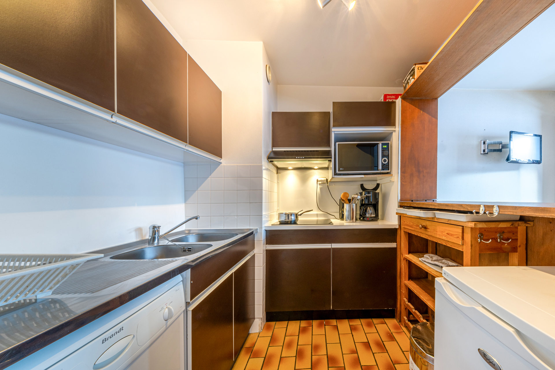Kitchen Equipped with microwave oven with grill, ceramic hob, electric hood, fridge with freezer and dishwasher. Small appaliances: toaster, electric juicer, electric coffee mashine, electric kettle, raclette machine, fondue machine and soup blender.