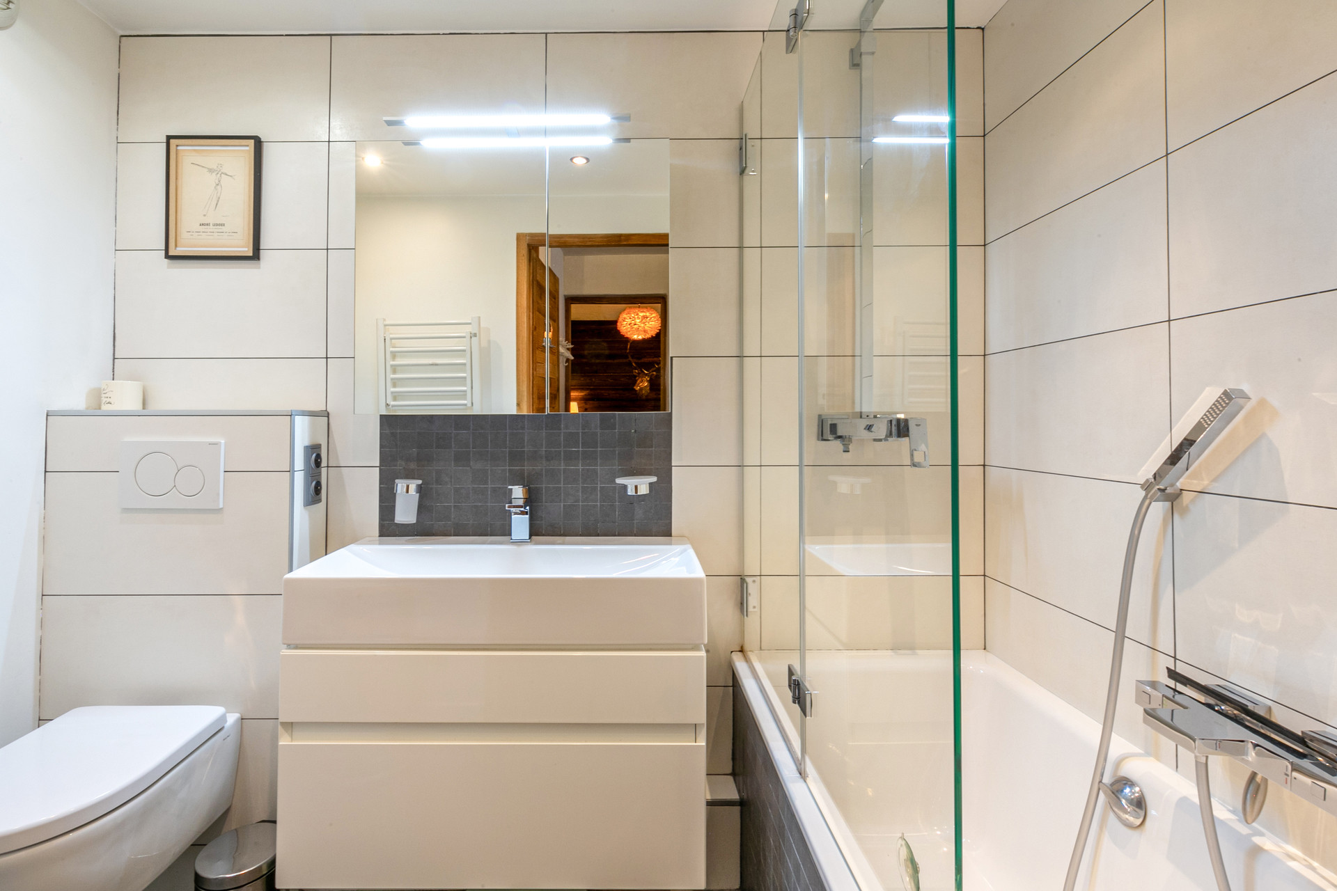 Equipped with microwave/oven, induction hob, fridge and dishwasher, washing machine with tumble dryer