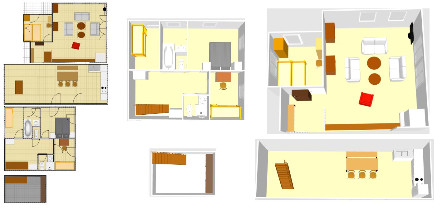 5 room duplex apartment with fire place comprising 82 m2 for 8 people in a small, calm and homely residence situated along the slopes.