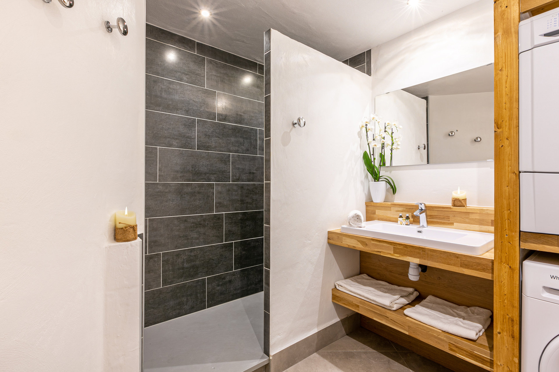 Shower italian room with washing machine and tumble dryer, towel dryer