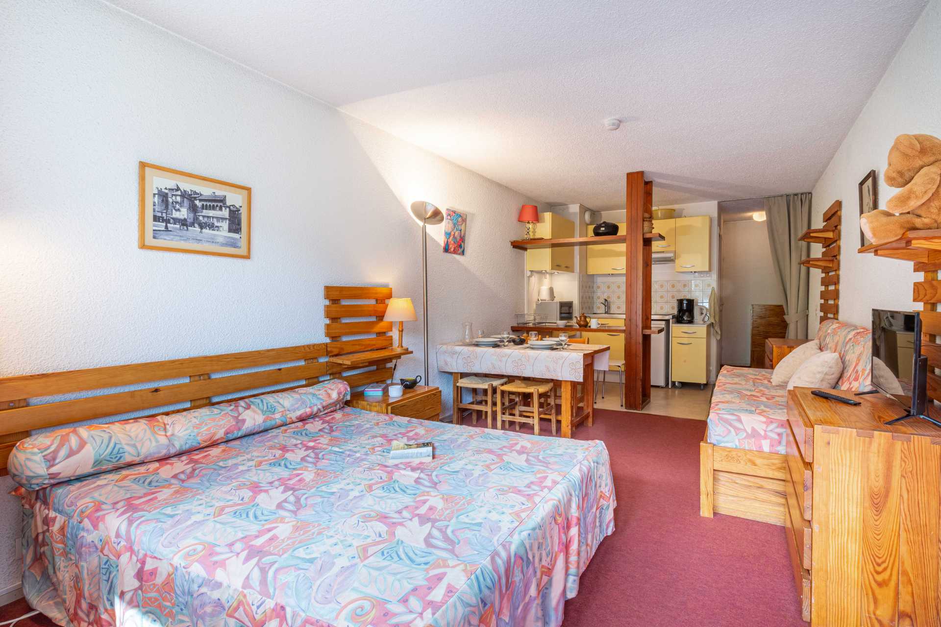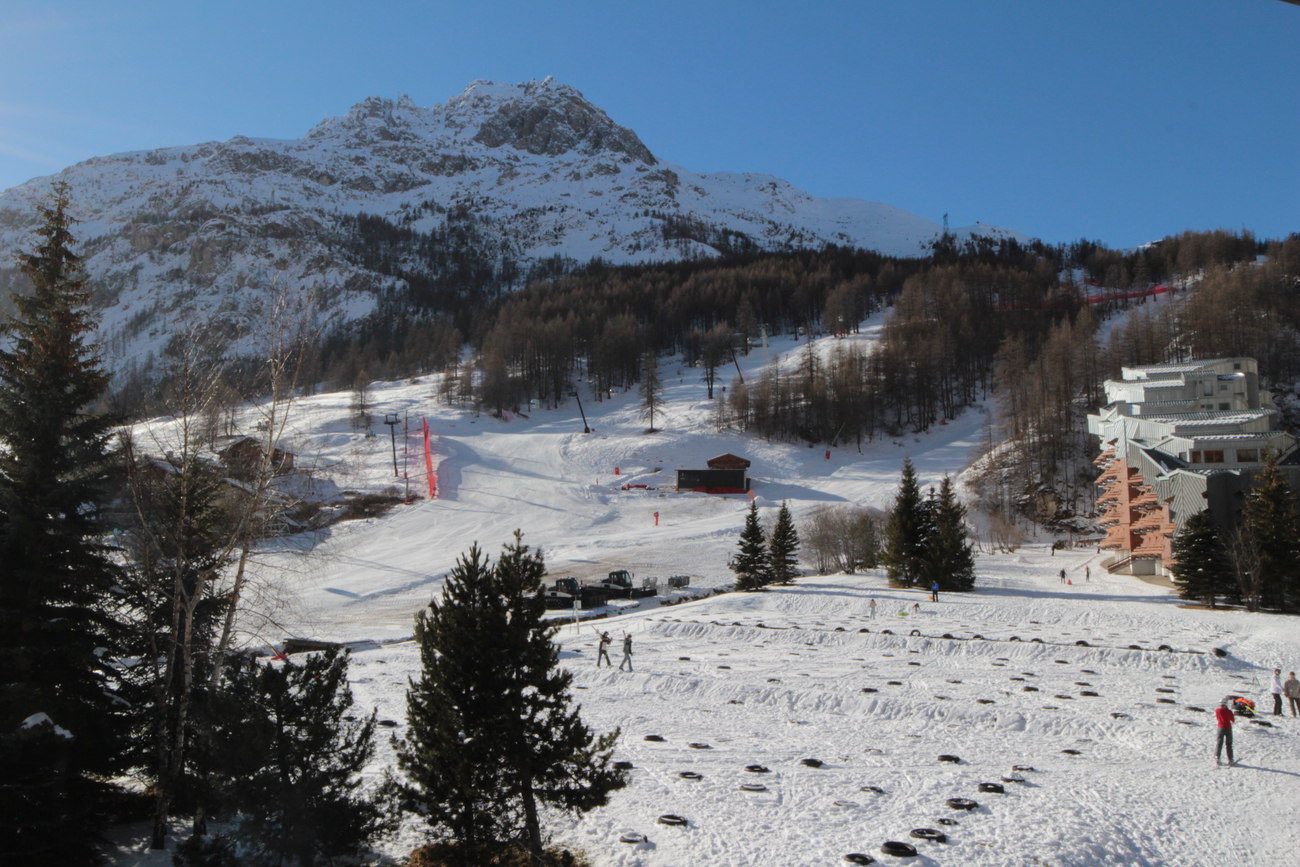 Near the shopping center (shops, restaurants, ski hire, ski lessons ...).