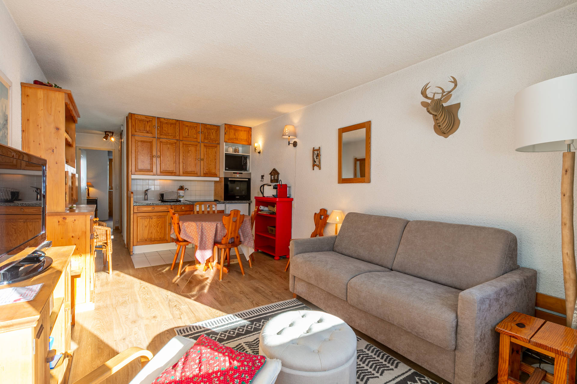 , fridge, oven3 room apartment of 43m2 for 5 people in La Daille Located on the 8th floor of the residence (7° floor with lift and last floor with stairs), entrance A, with a South facing balcony Beautiful landscape on the surroundings mountains