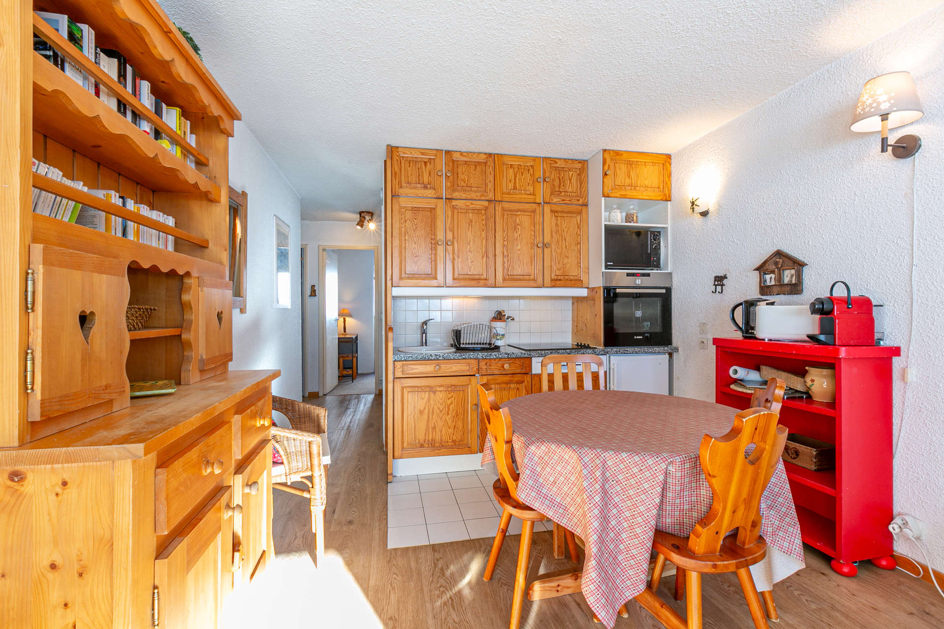 Kitchen Equipped with microwave oven, ceramic hob, dishwasher, fridge, oven, hood Small appaliances: electric mixer, nespresso coffe machine, toaster, raclette machine, electric kettle