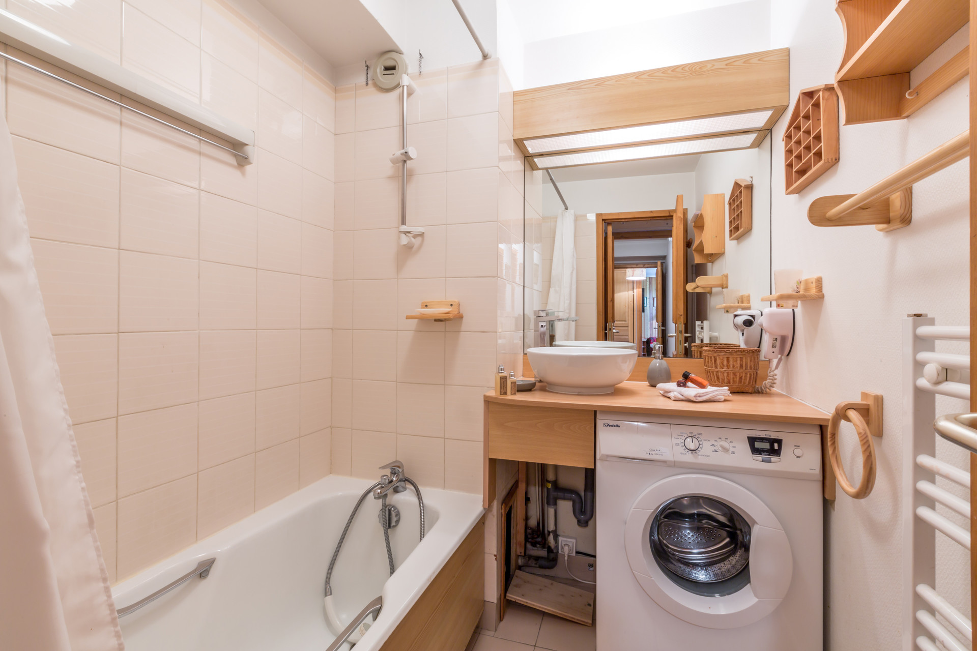 Kitchen Equipped with dishwasher, microwave oven , ceramic hob, oven, fridge Small appliances: fondue machine, raclette machine, toaster, electric coffee machine, nespresso coffee machine, electric kettle, blender and electric mixer.