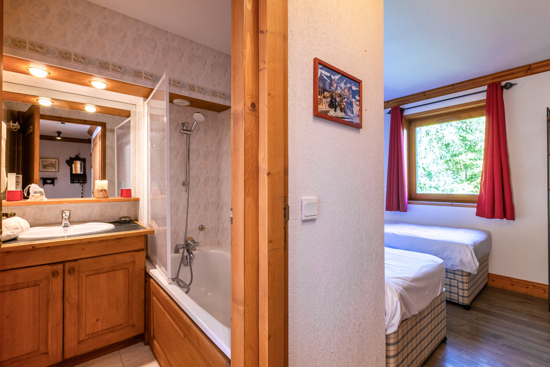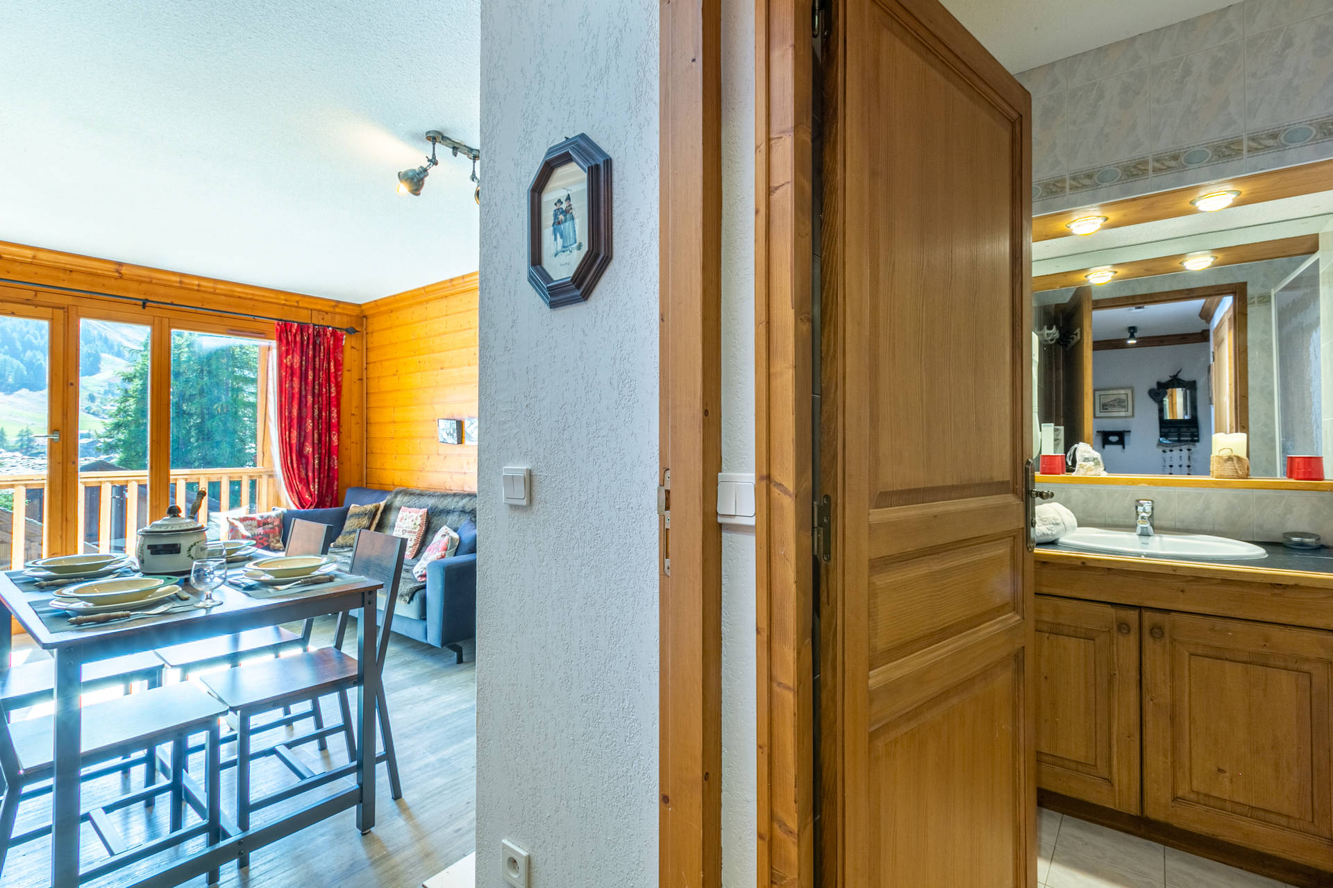 Located on the 3rd floor of the chalet with a South/East facing balcony with a beautiful view onto the mountain of Solaise