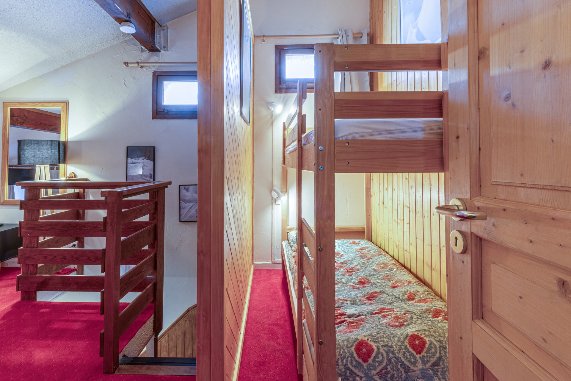 partly under 1.80 m and separated from the living room by a door