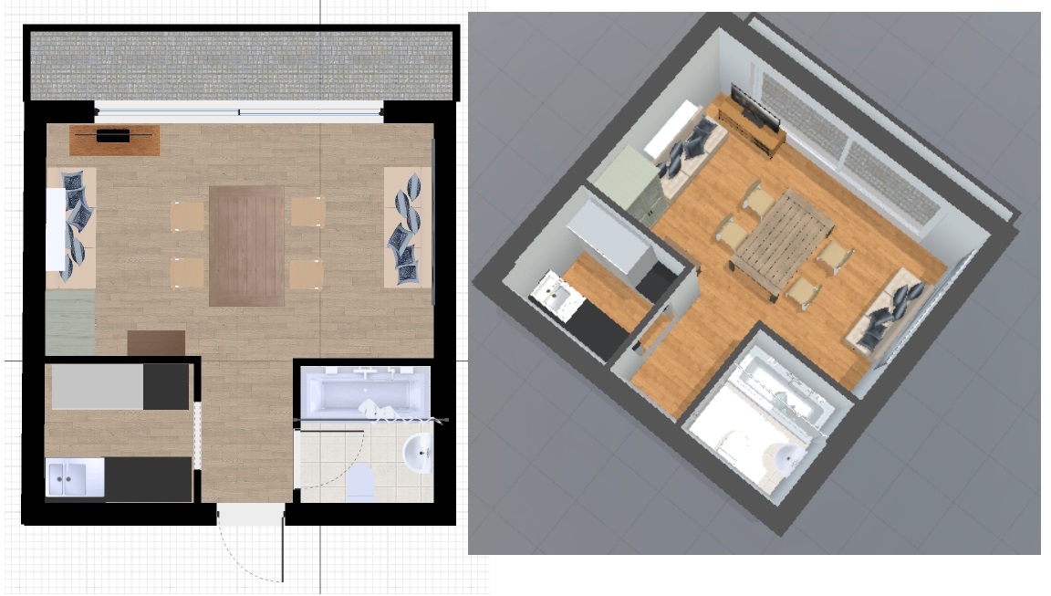Equipped with oven, microwave oven, ceramic hob and fridge