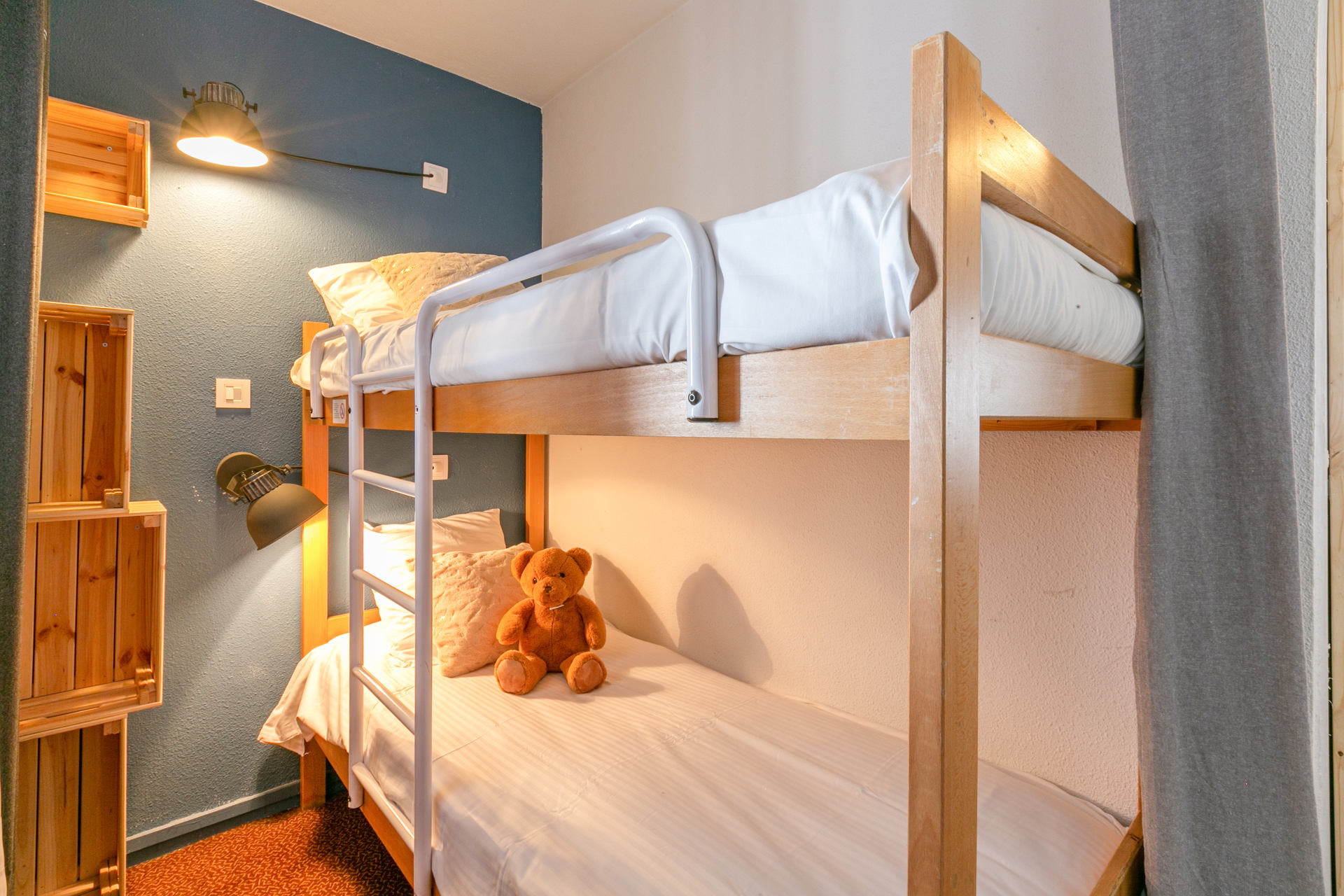Corner with 2 bunkbeds (80x190cm) hidden by a curtain