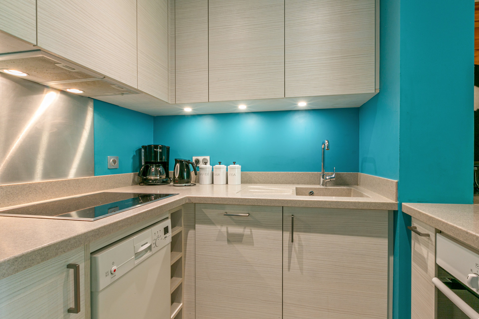 Fully equipped kitchen with oven, microwave, dishwasher, vitroceramic stove, large fridge, freezer.