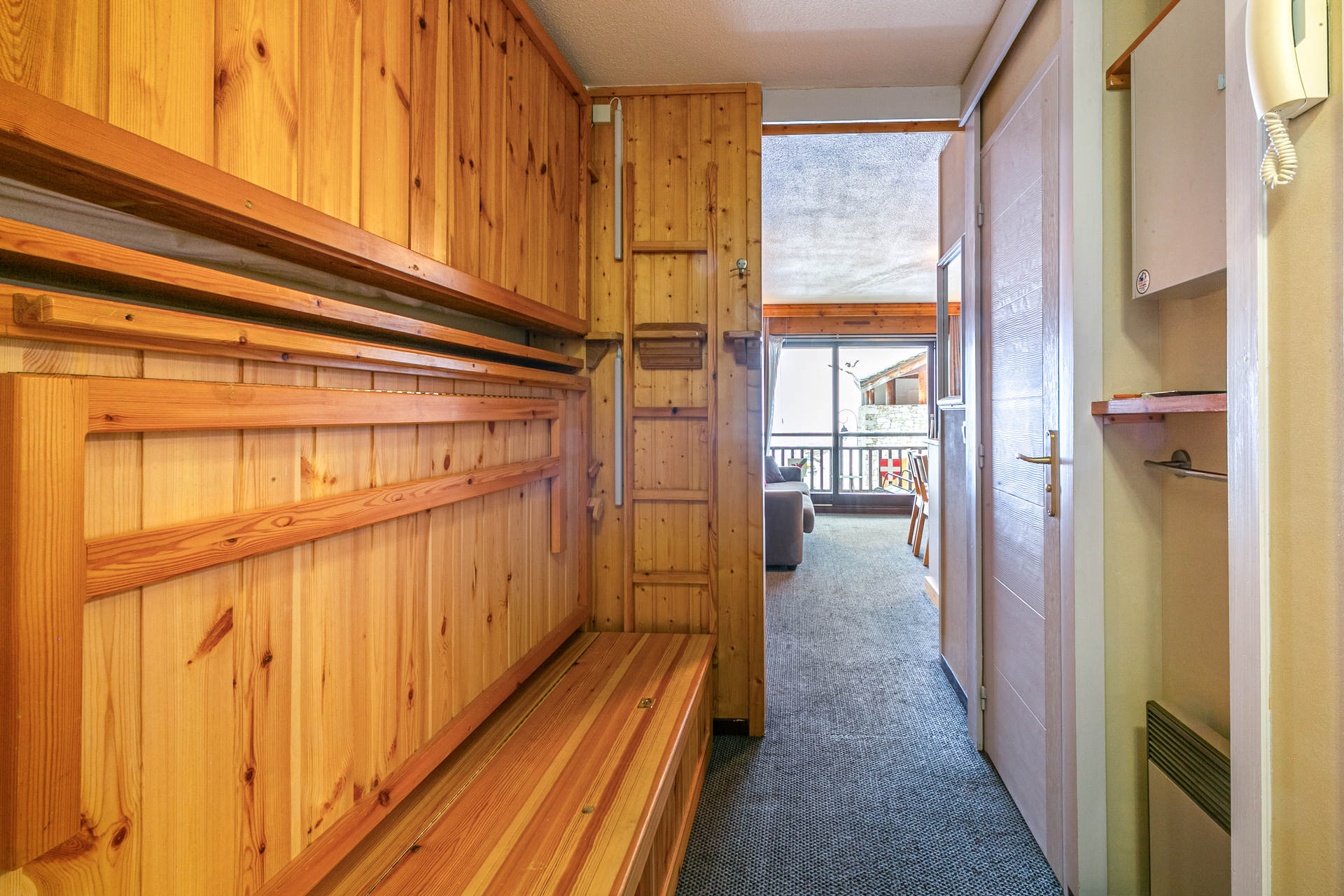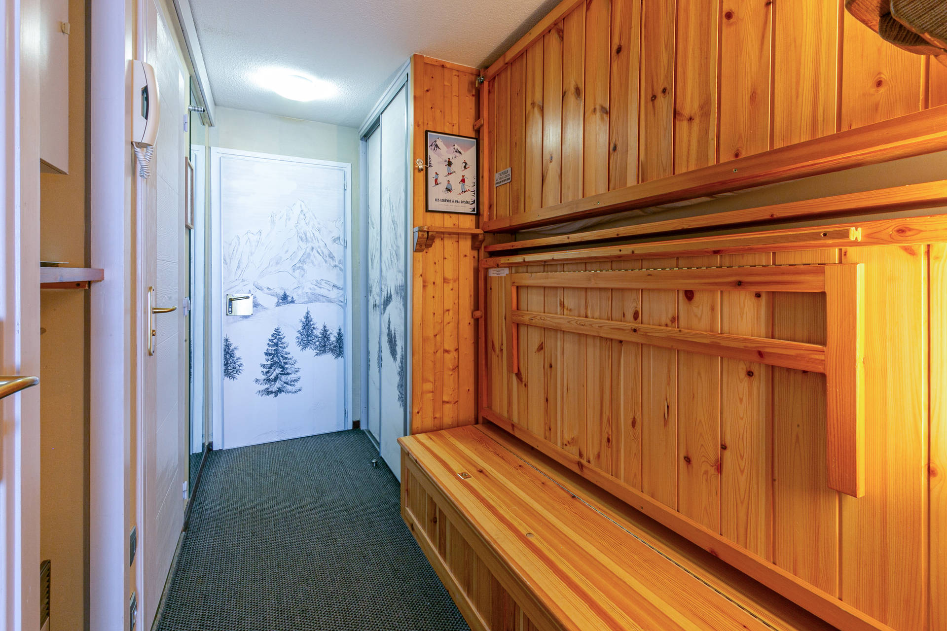 Ski room and rubbish room on the ground floor of the building.
