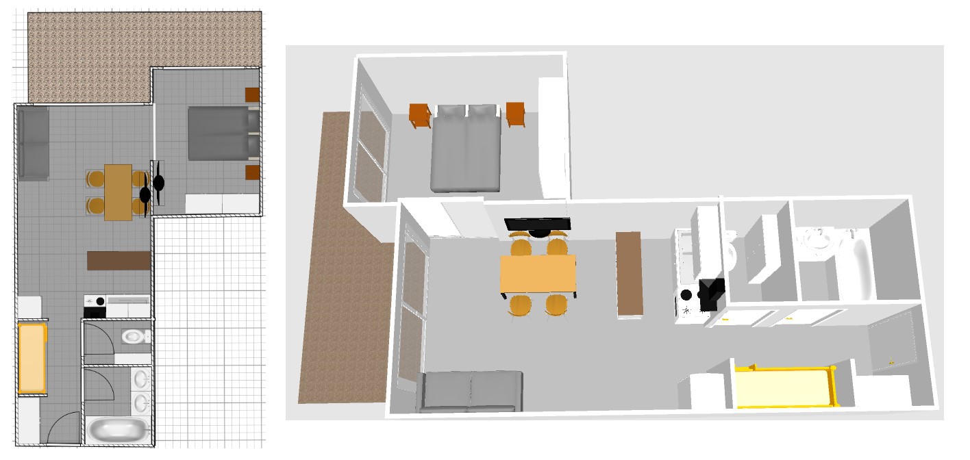 2 room apartment of 40m2 for 4 people