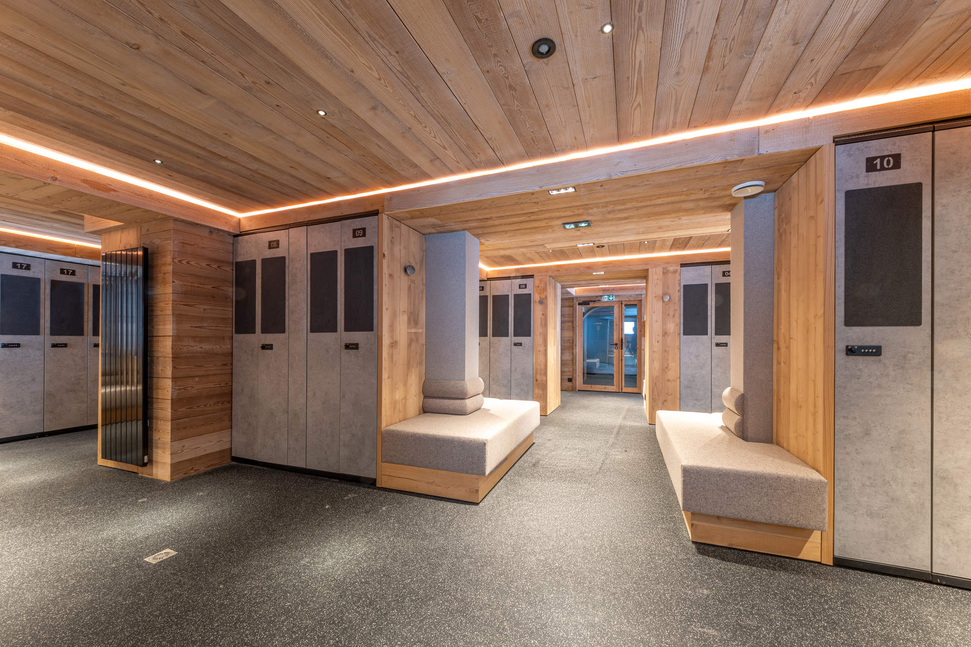 Residence with lift, heated ski room and ski-boot dryer, rubbish room on the ground floor of the building.