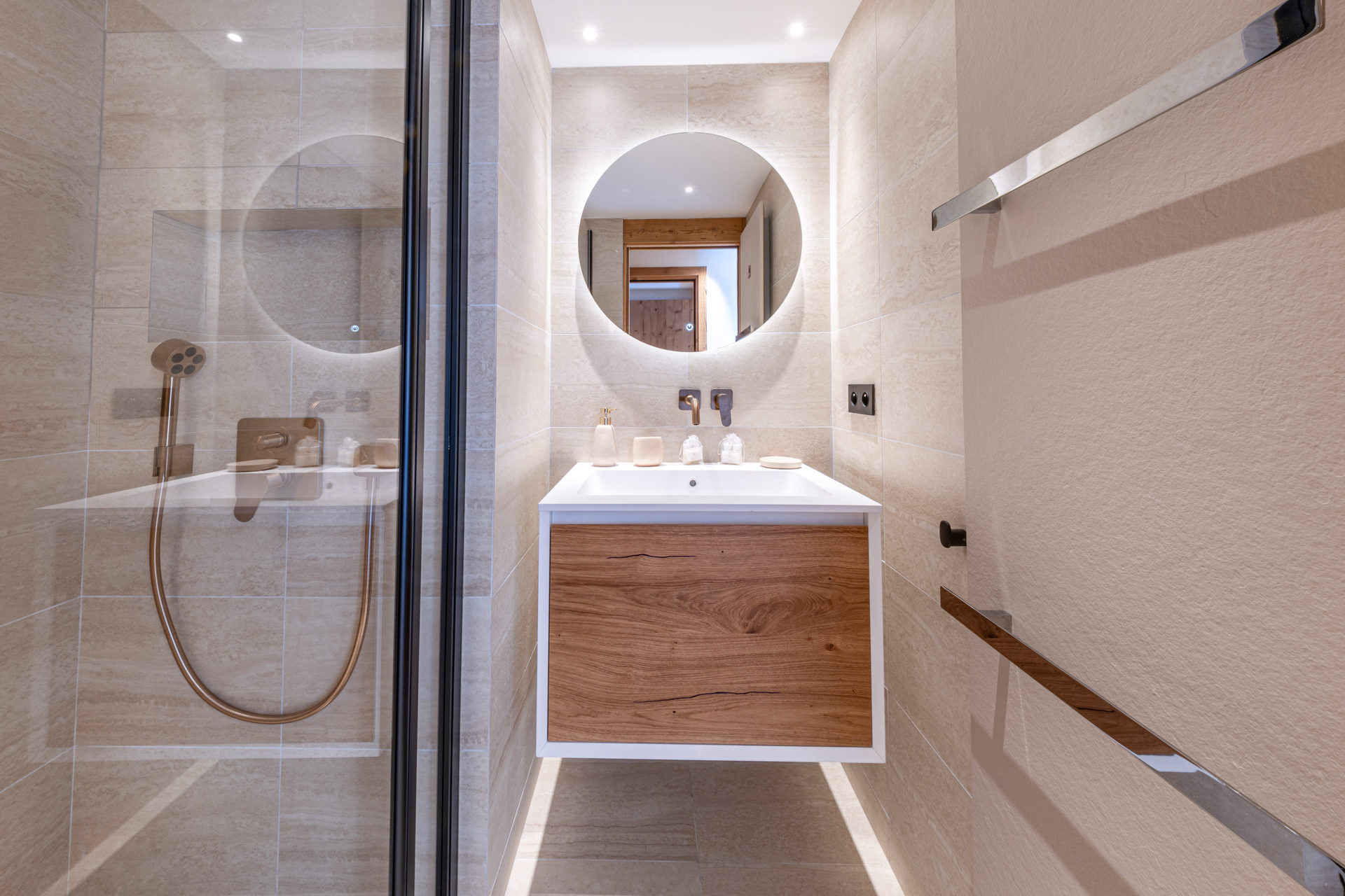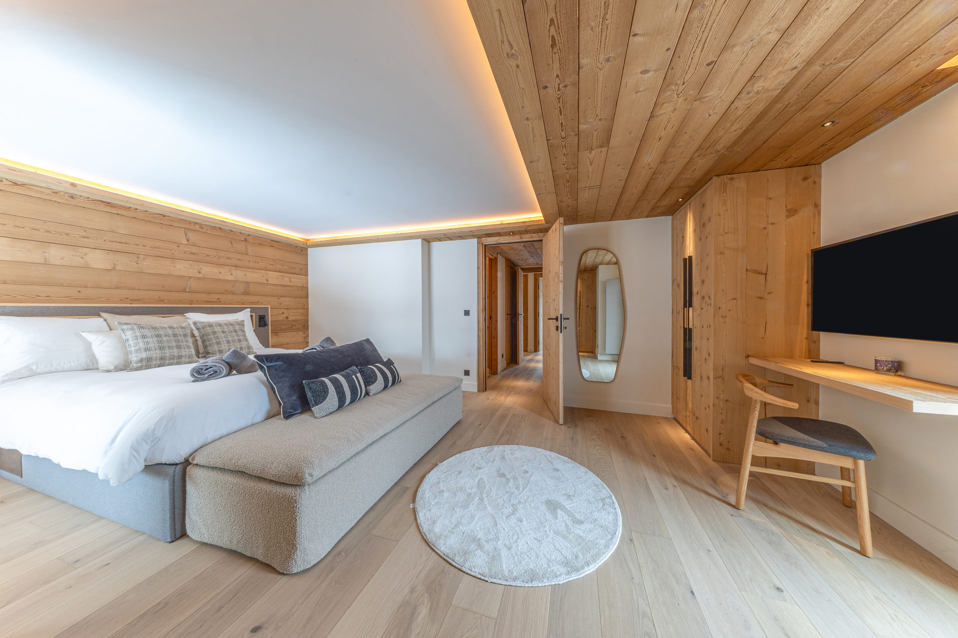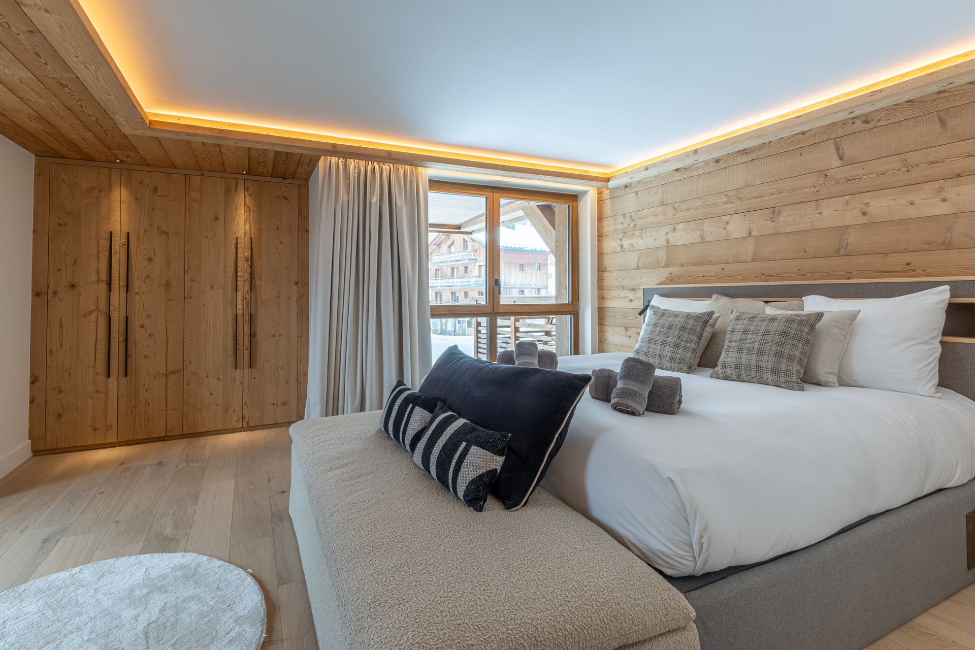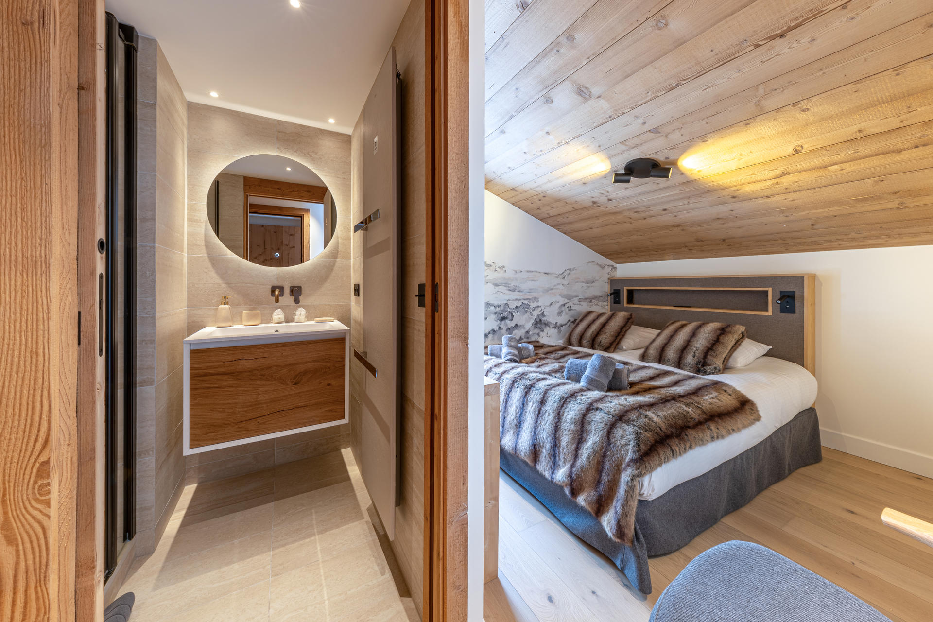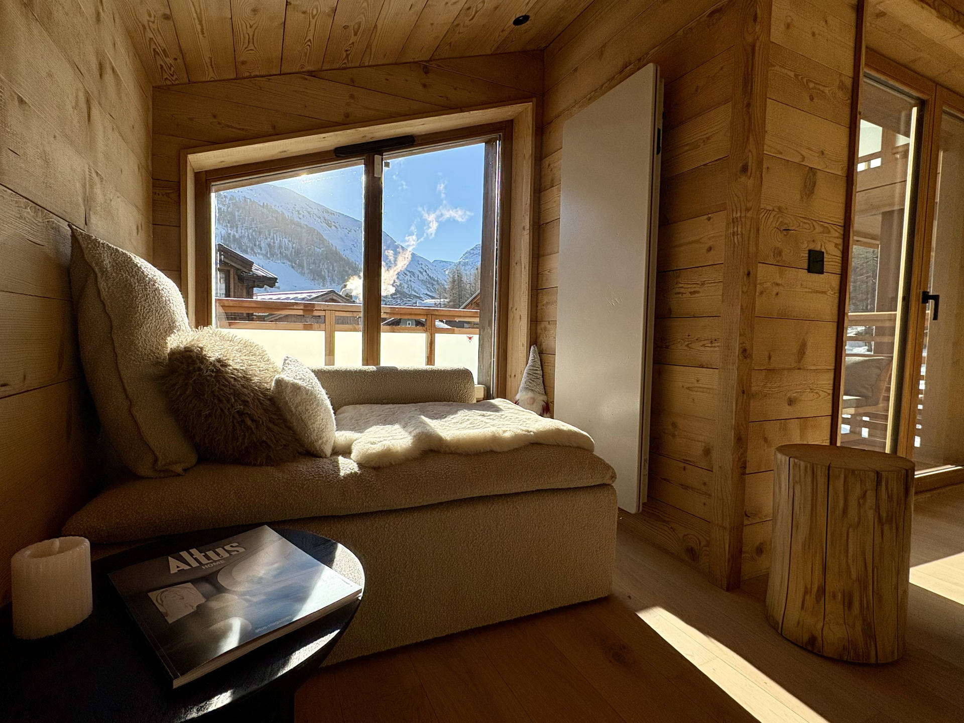 A 10-minute walk from the slopes, superb penthouse with a contemporary and warm chalet atmosphere, comprising 5 rooms on two floors, with a total surface area of 129 m², including 13 m² under the eaves, which can accommodate 8 people.