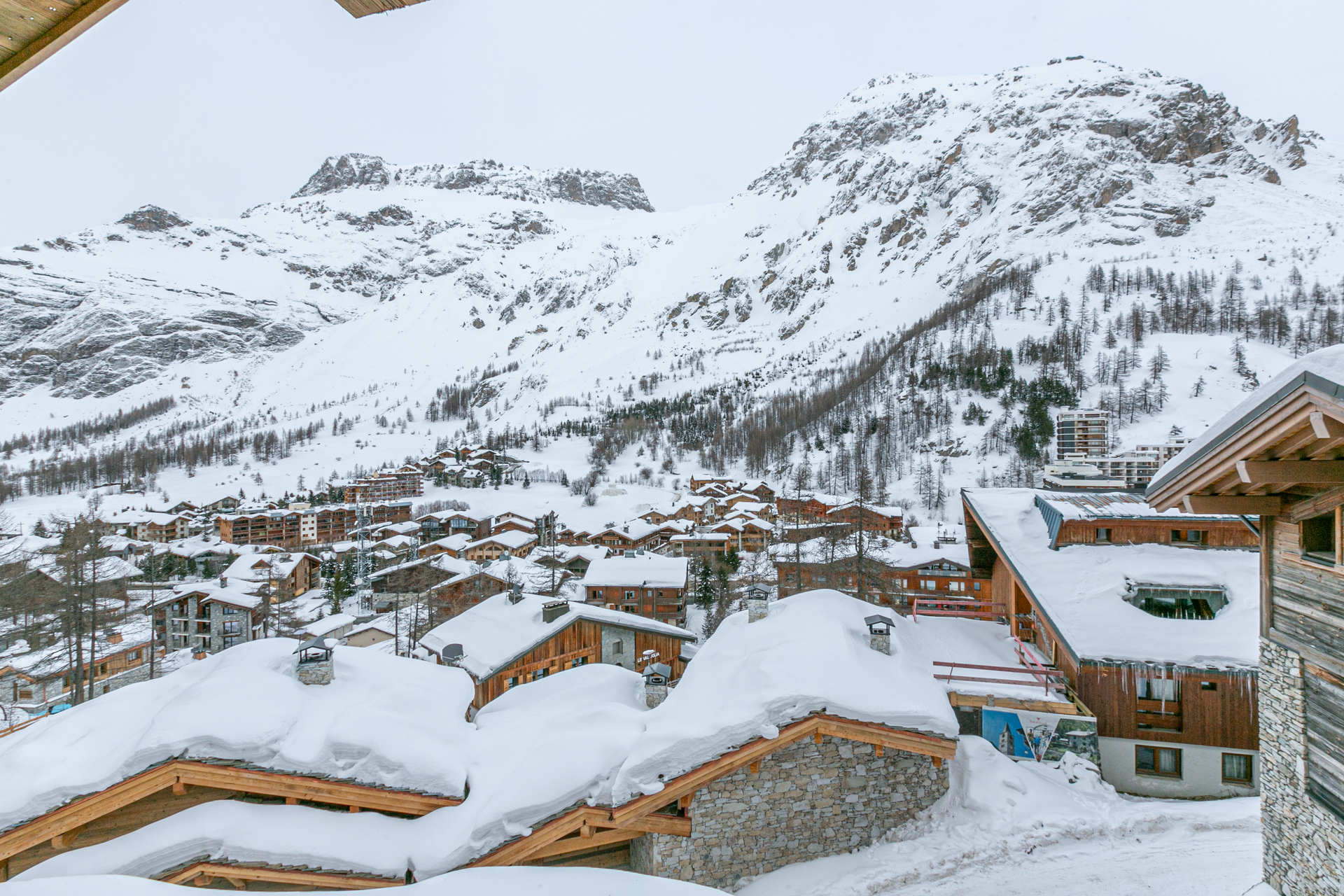 Stuning view onto the mountains and the roofs of the village