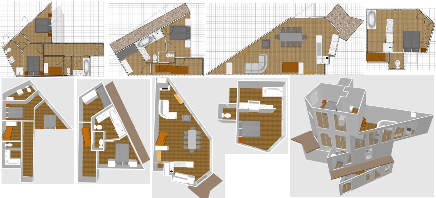 A high standing chalet apartement with 6 rooms, totaling 160 m2 on 4 levels for 8 adults and 2 children