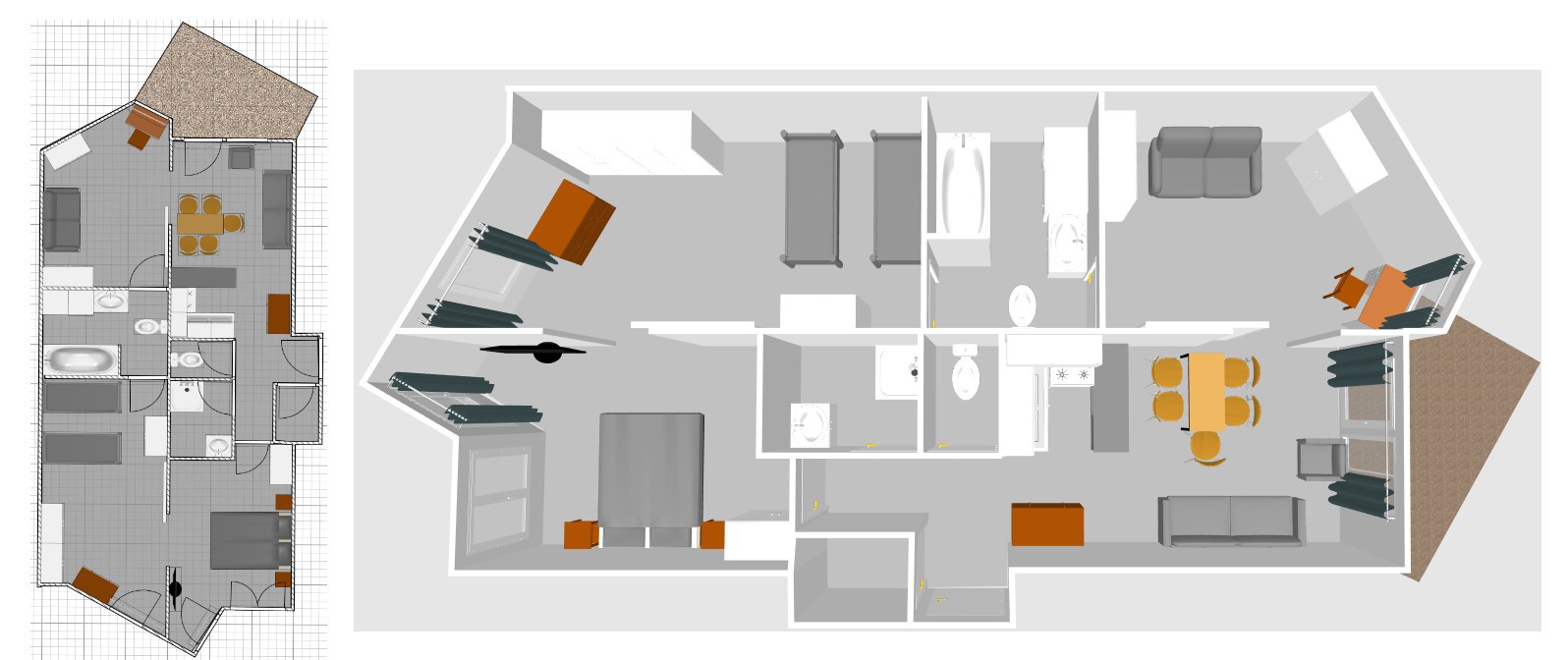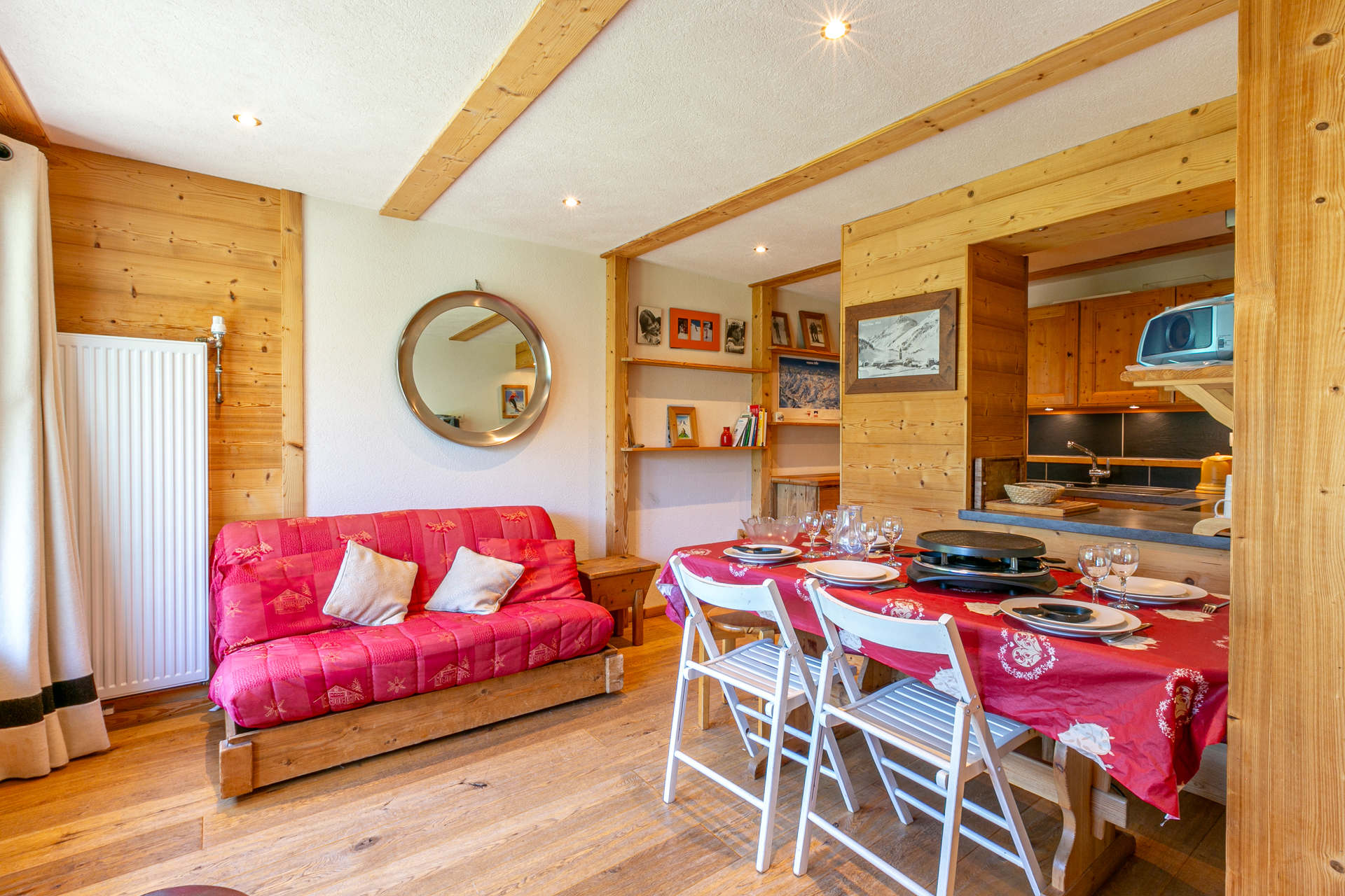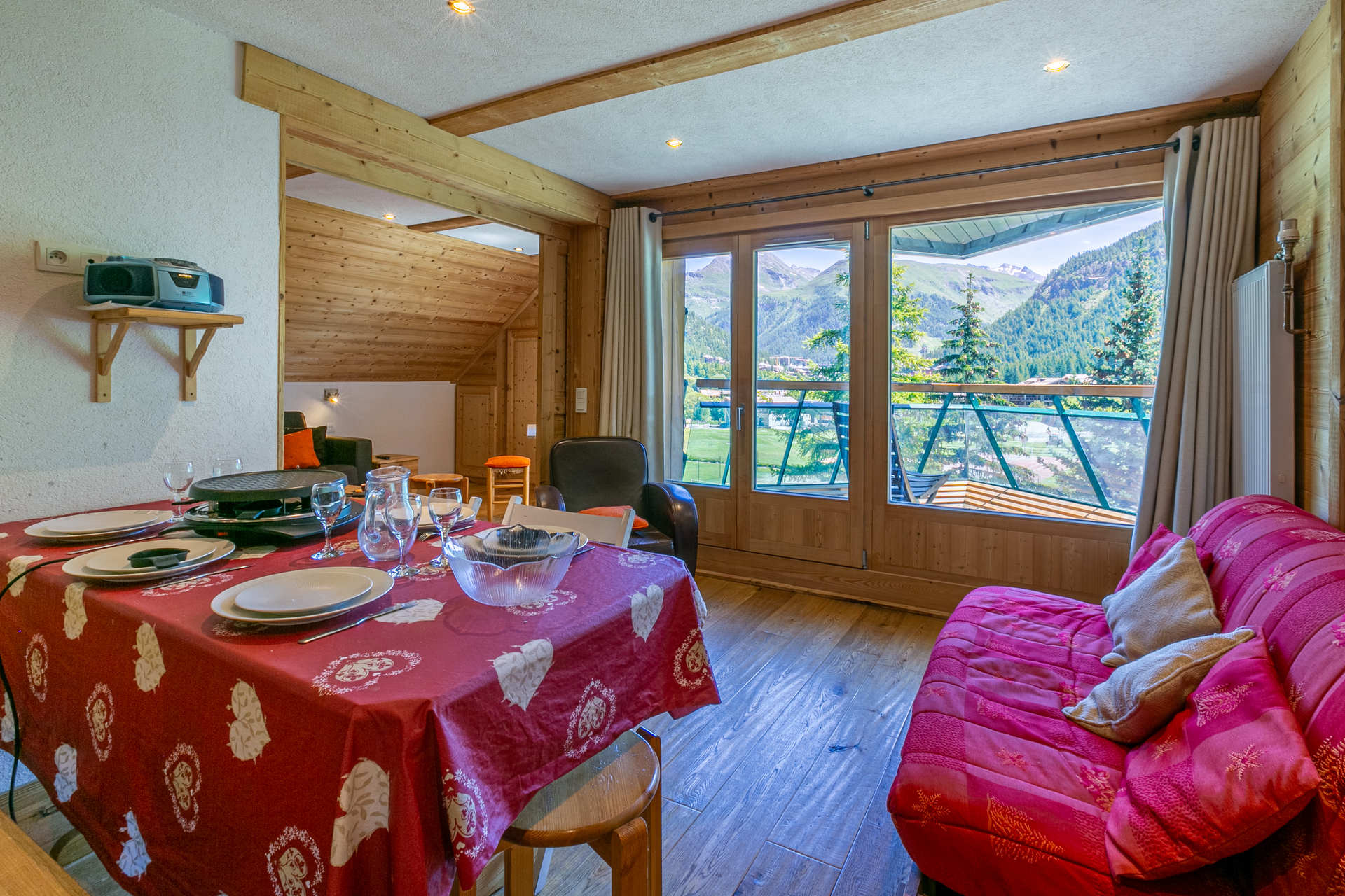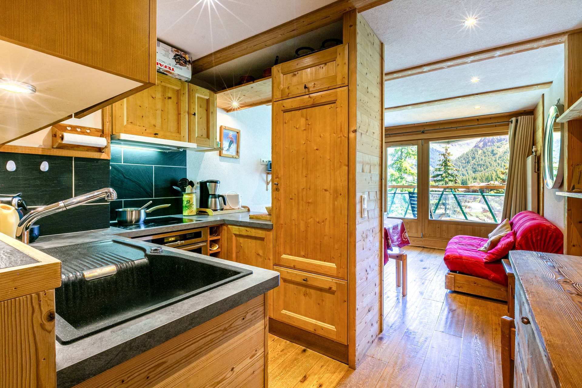 Located on the 4rth floor of the residence, entrance D, with a South facing balcony offering a clear view on the slopes.