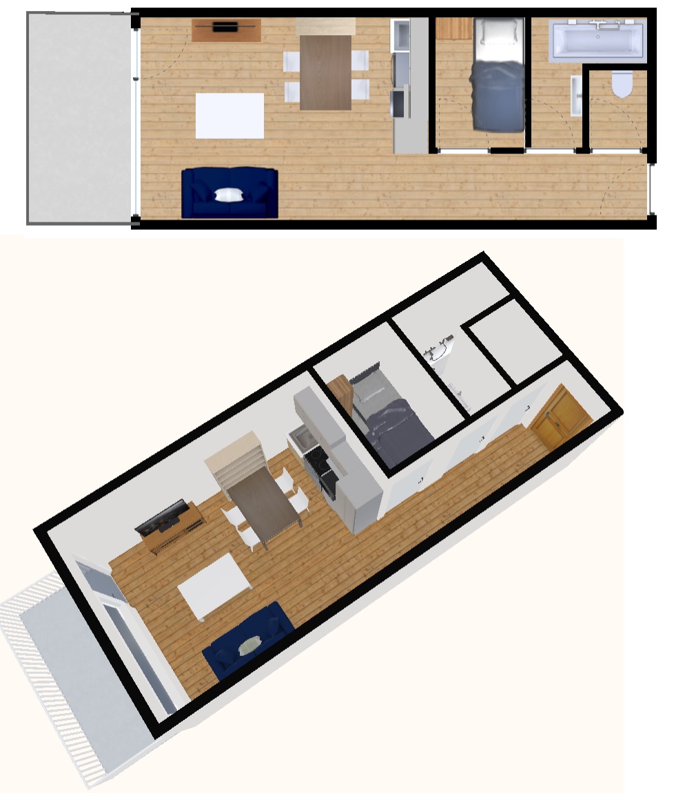 Studio of 32m2 with cabin for 4 people