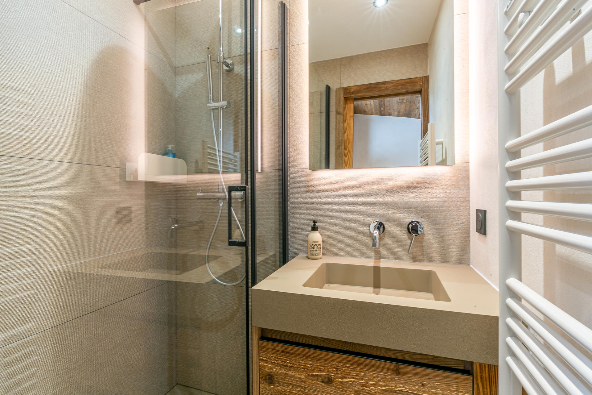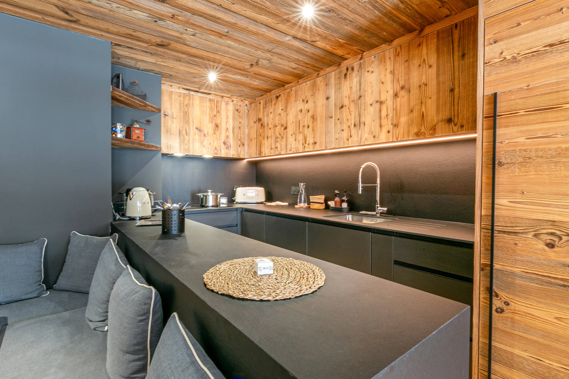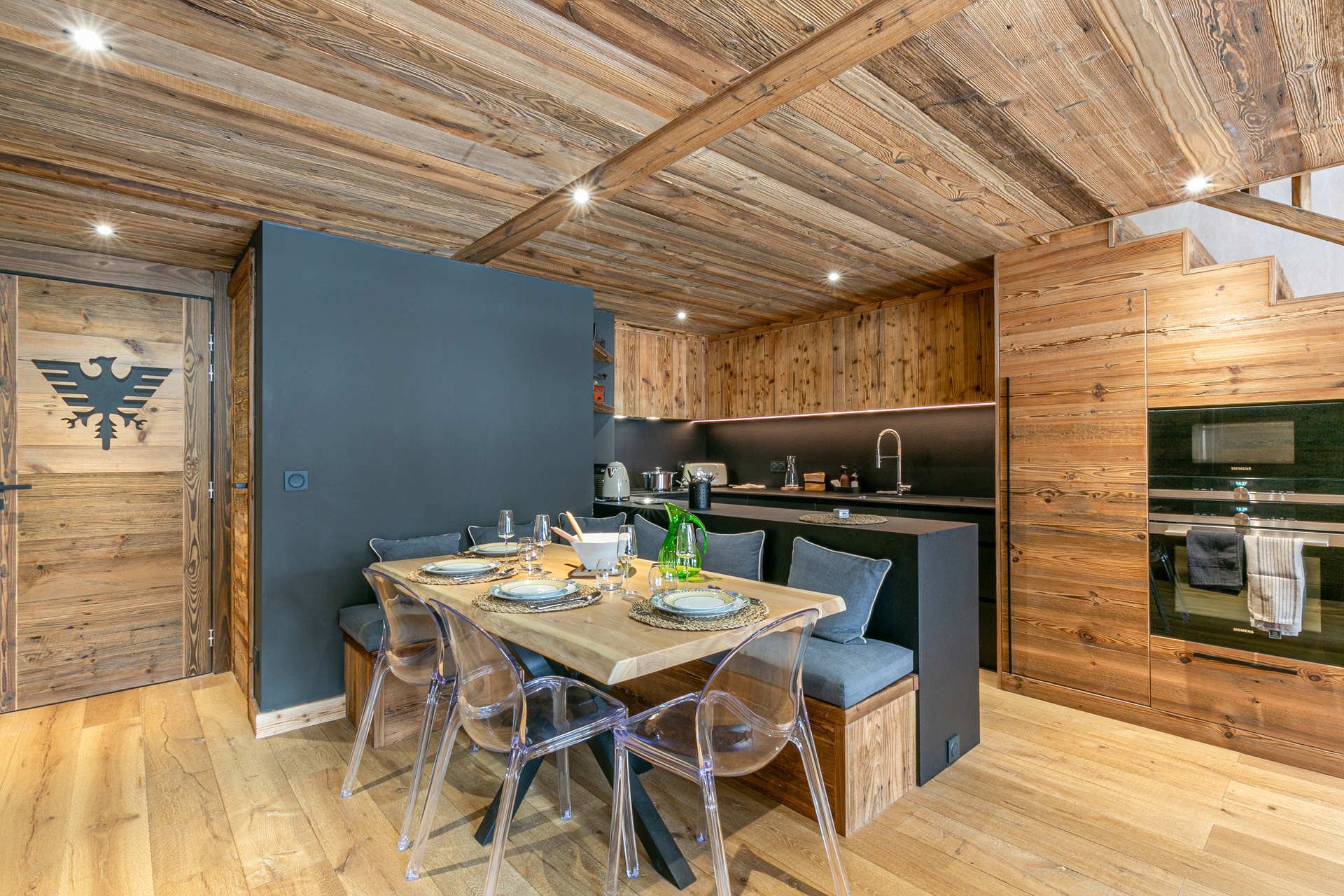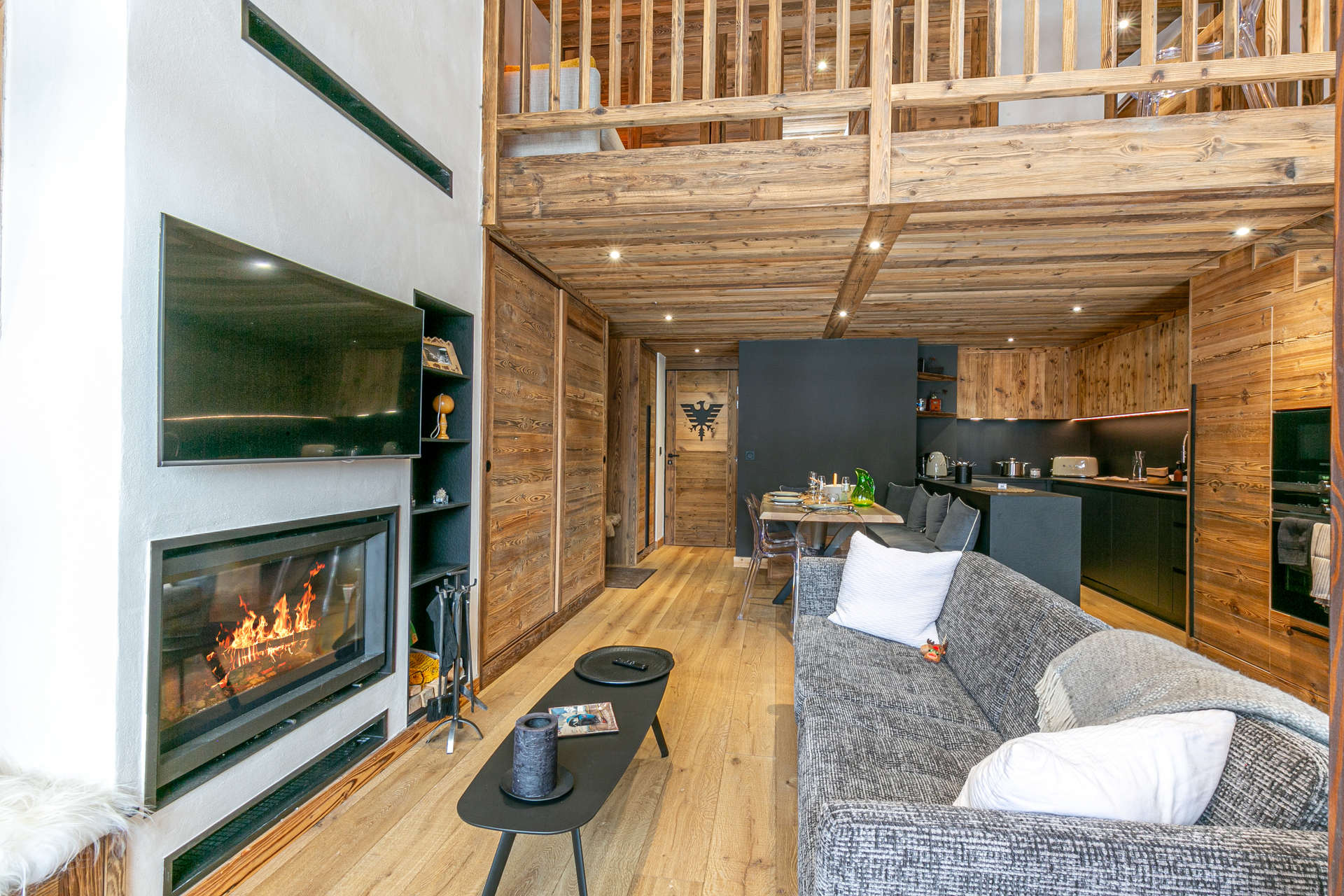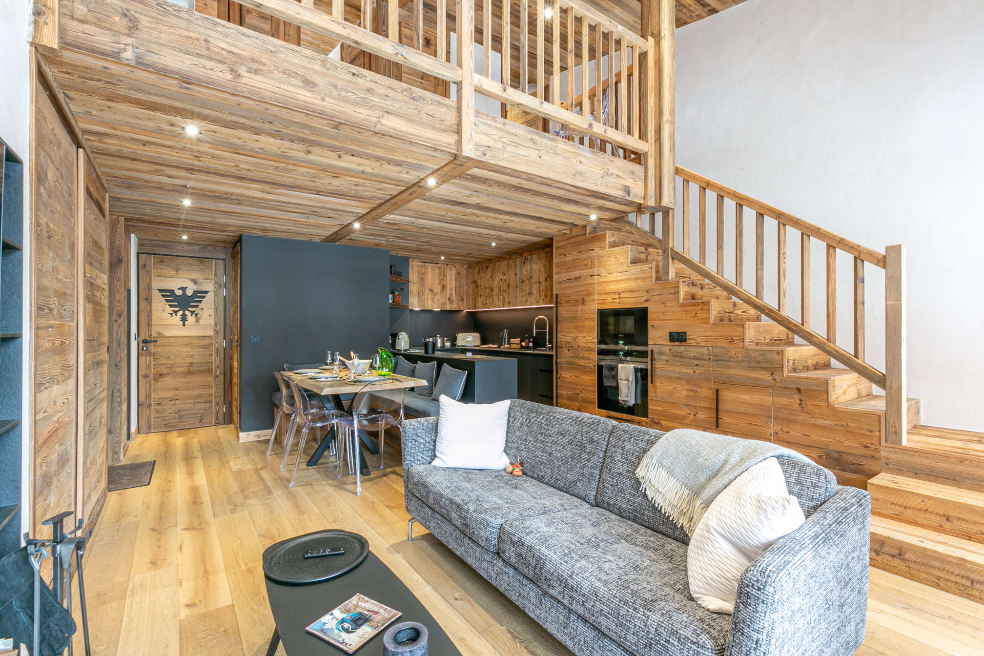 Equipped with dishwasher, oven, microwave, hood, induction hob, large fridge with freezer