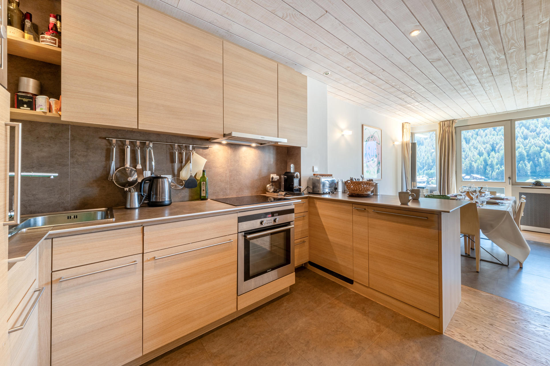 Equipped with an oven, dishwasher, microwave, ceramic hob, fridge and freezer compartment, wine cellar