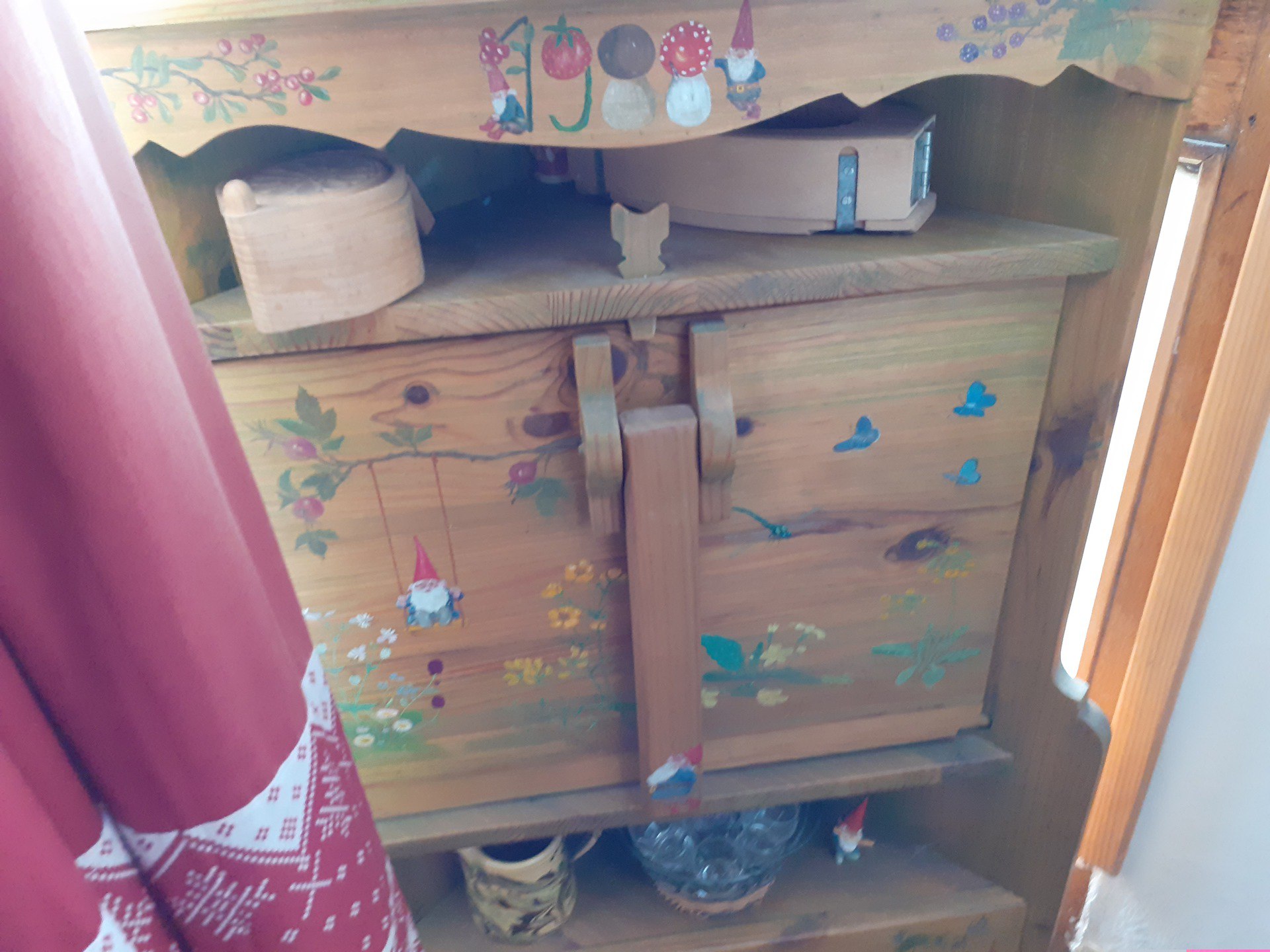 Pot à couvert ou boîte à sel muraux peints