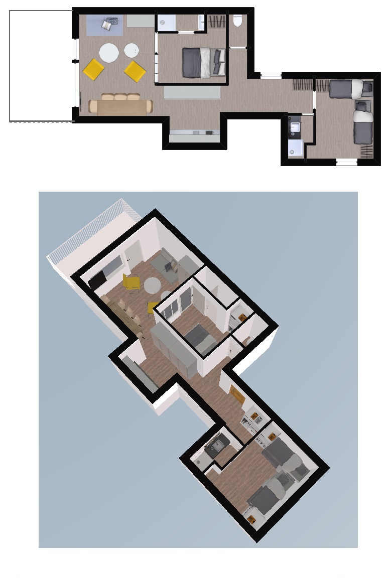 Located on the 2nd floor of the residence, entrance C with a South facing balcony and a large view onto the village and the surrounding mountains