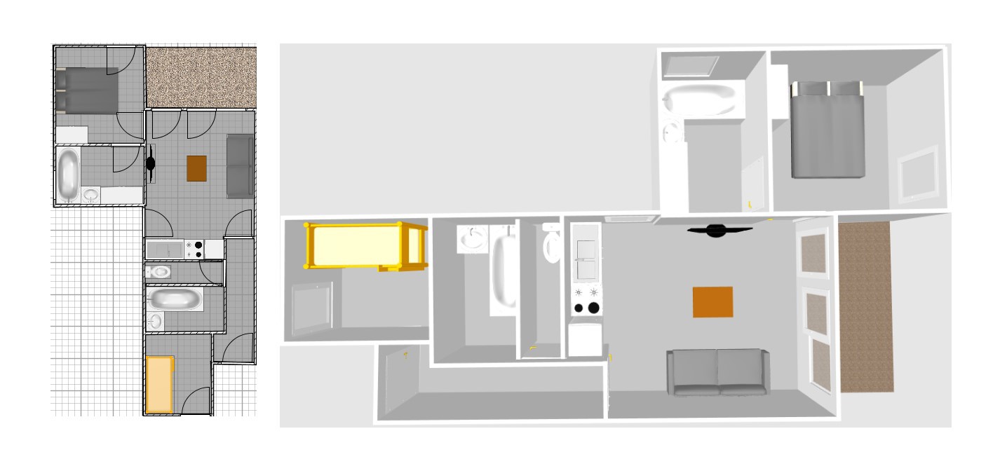 Equipped with microwave oven with grill, dishwasher, ceramic hob, fridge with freezer