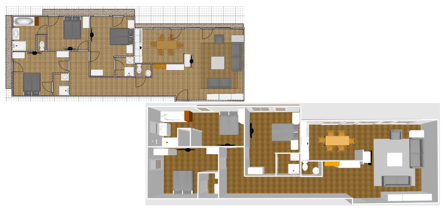 Elegant 4 room apartment of 100 m2 for 6 people.