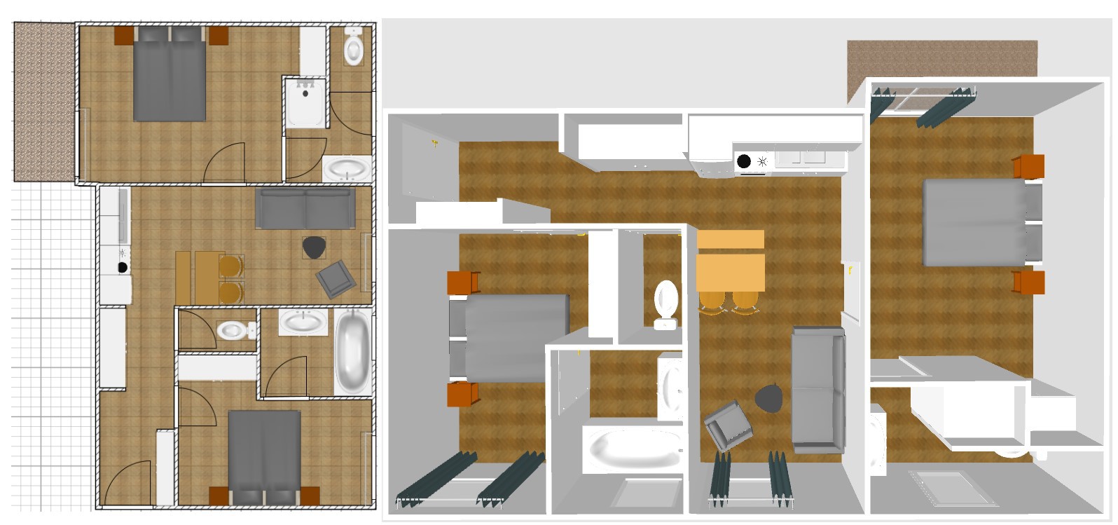 1 double bed 180X200 cm+ Ensuite showerroom/toilet/2 basins
