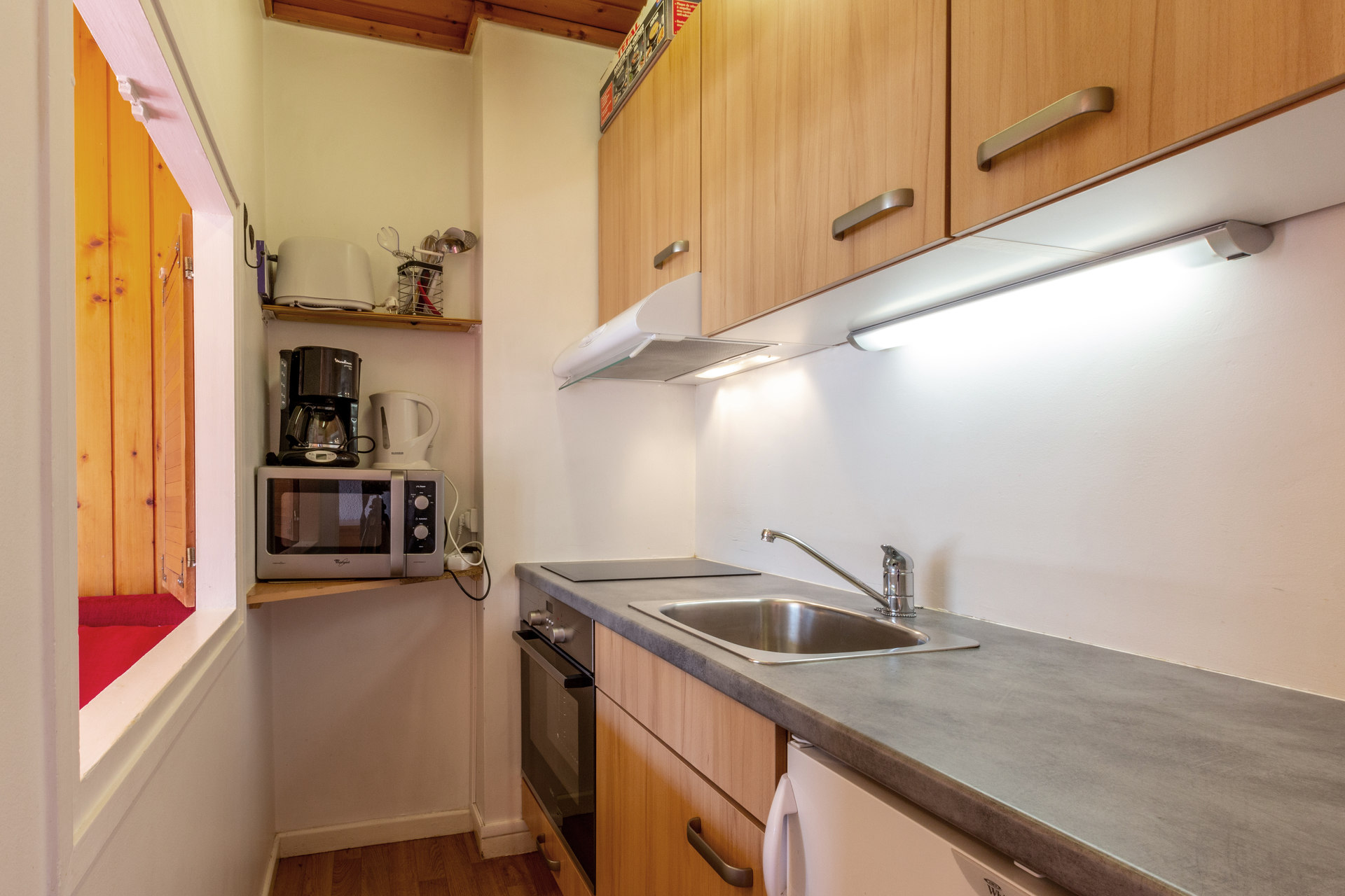 Equipped with oven, microwave oven, ceramic hob, hood, fridge