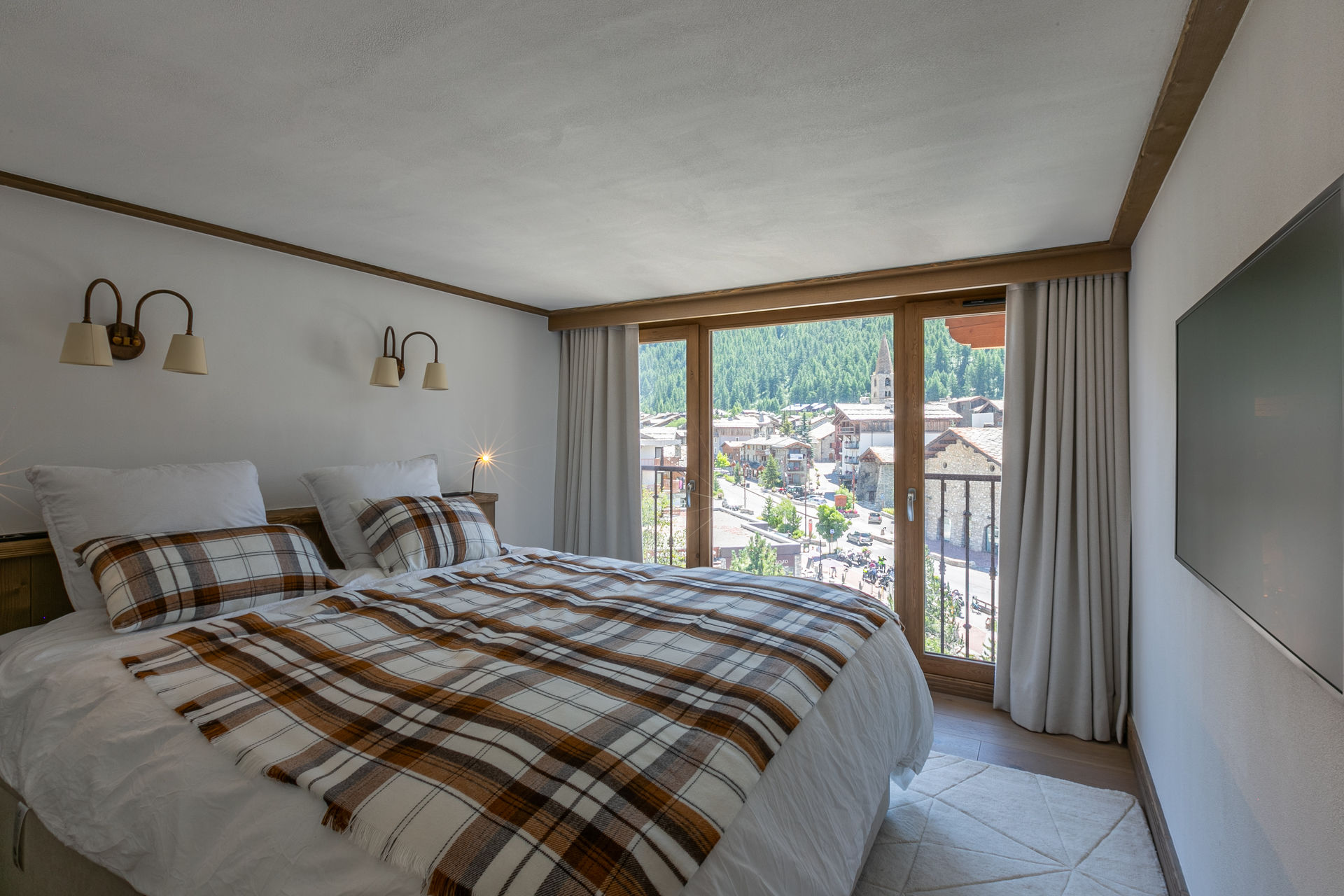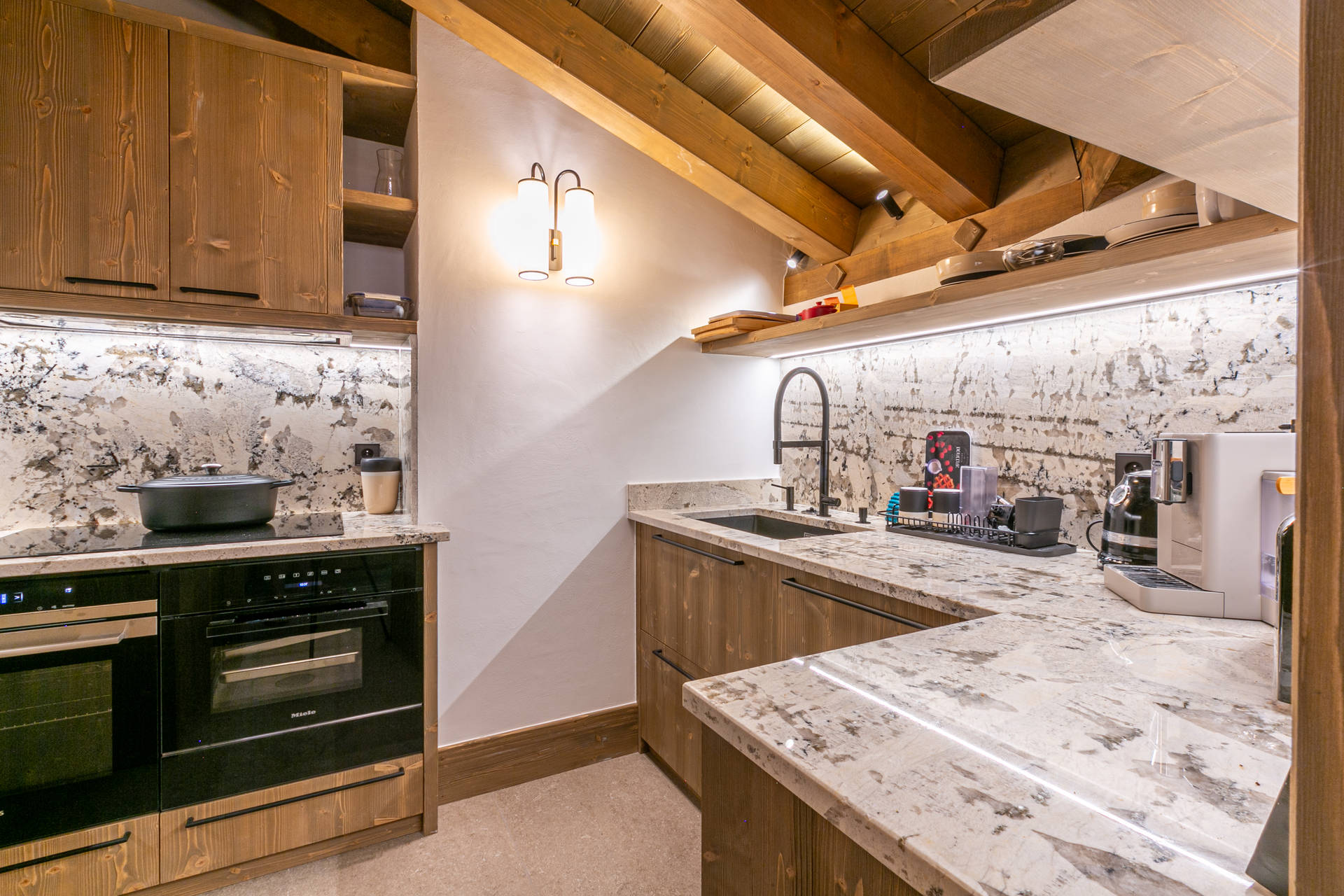 In a wood style and high quality features with South facing balcony and beautiful views onto the village and the surrounding mauntains.