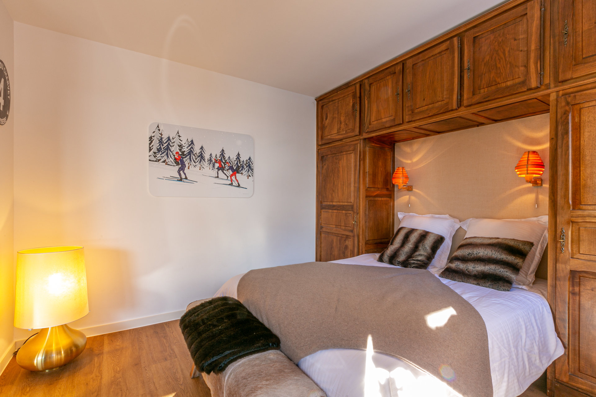 Bedroom closed by 2 sliding doors 1 double bed 140x200 cm Television with chromecast