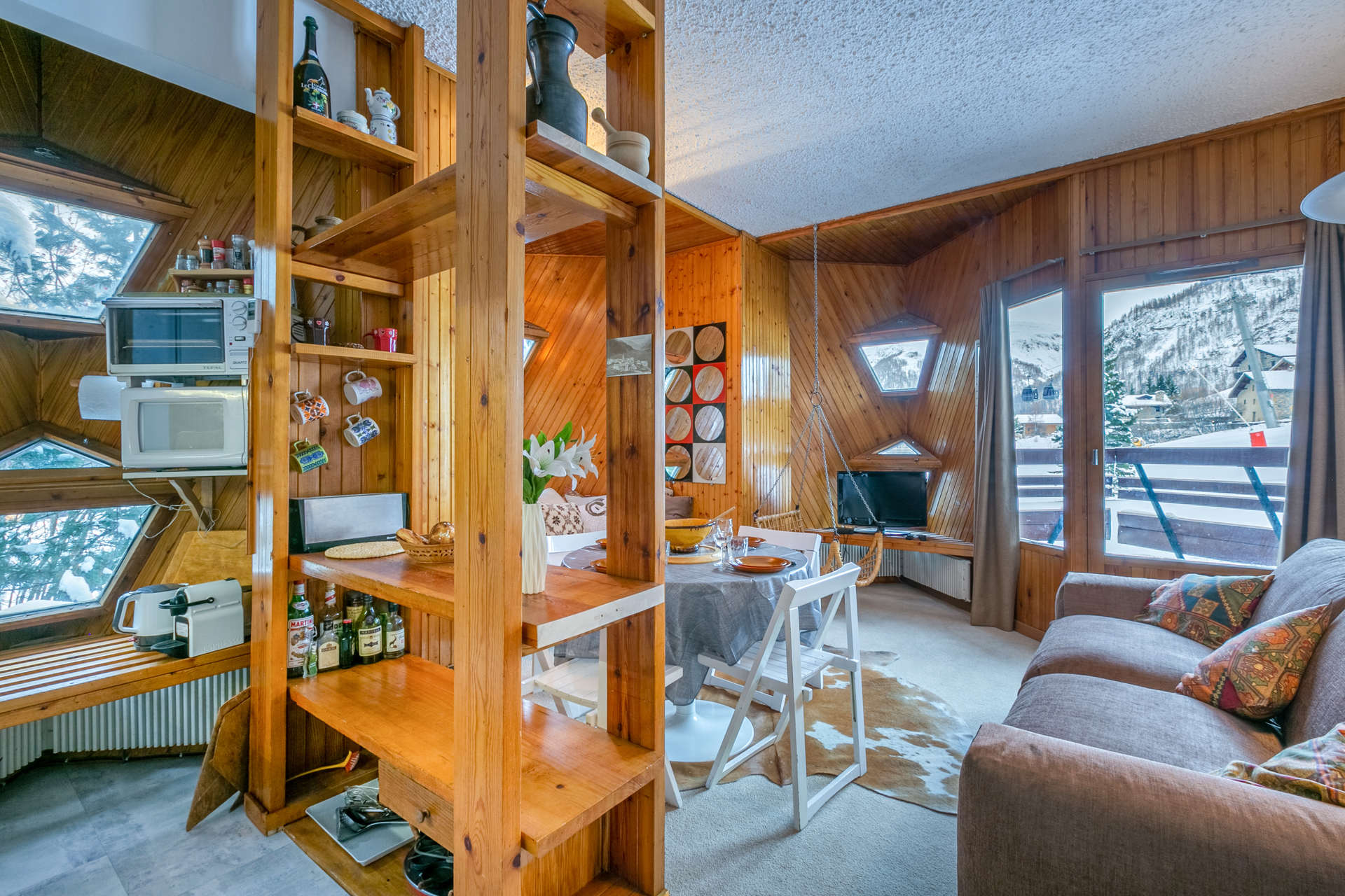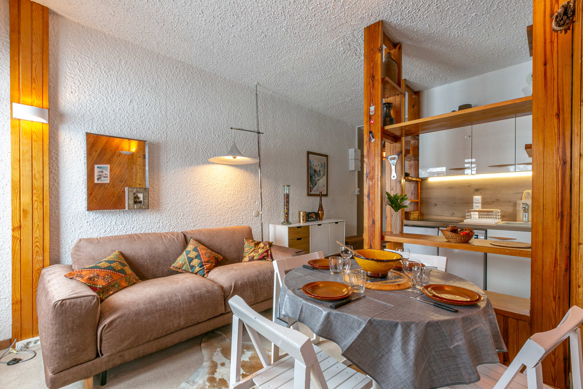 Near the shopping center (shops, restaurants, ski hire, ski lessons ...).