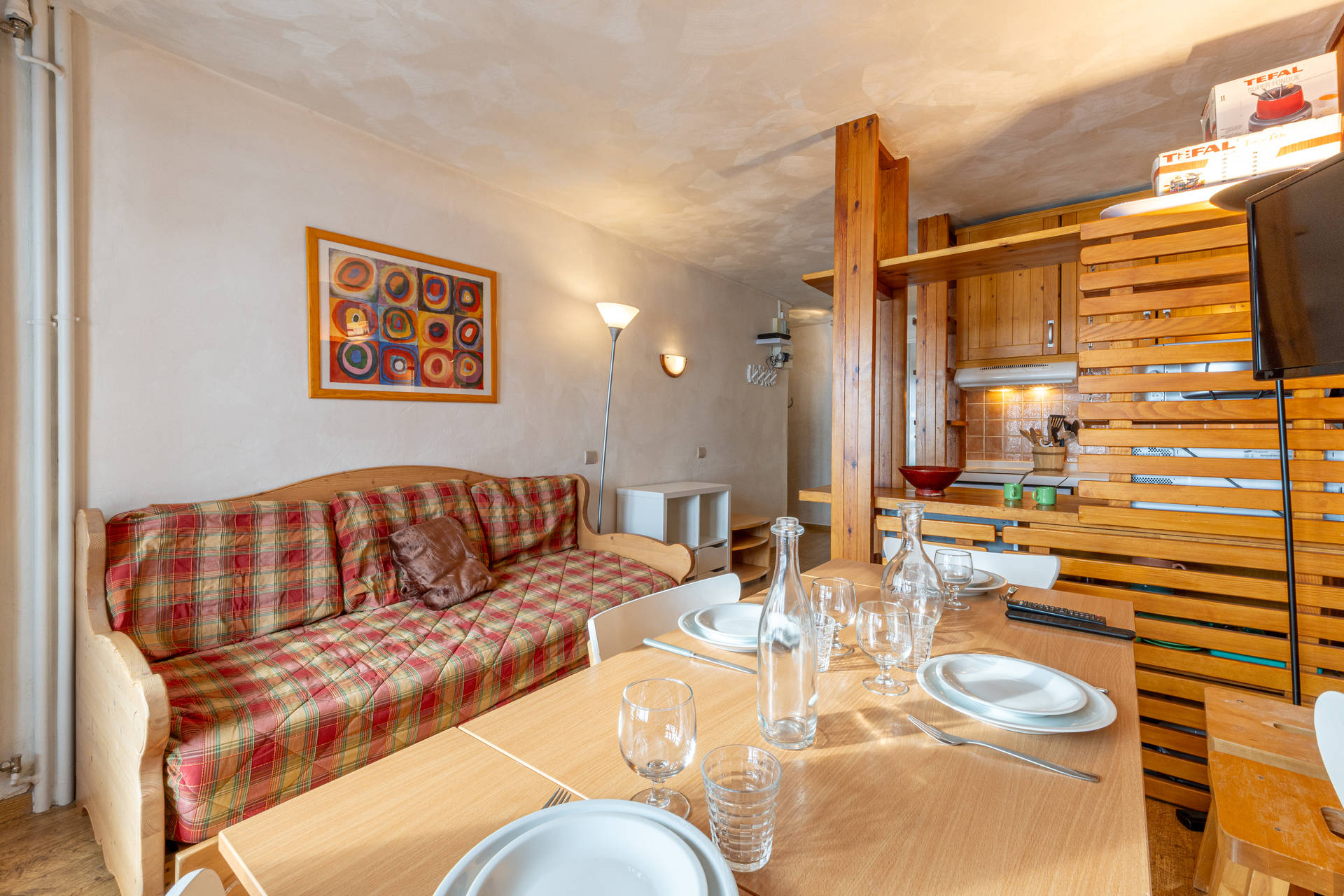 Near the shopping center (shops, restaurants, ski hire, ski lessons ...).