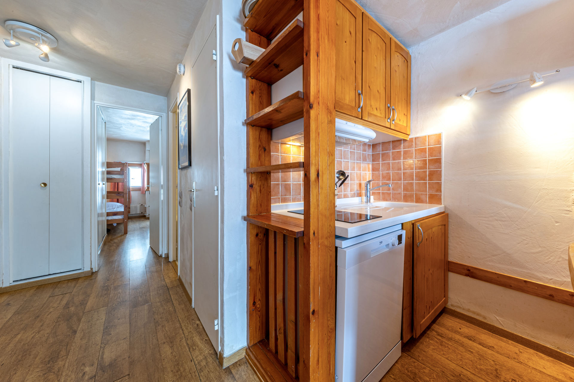 Equipped with small oven, induction hob, fridge, dishwasher, micriwave oven