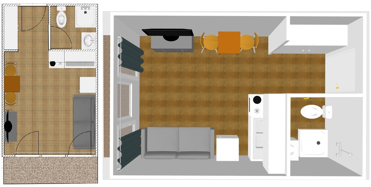 Studio of 15m2 for 2 people