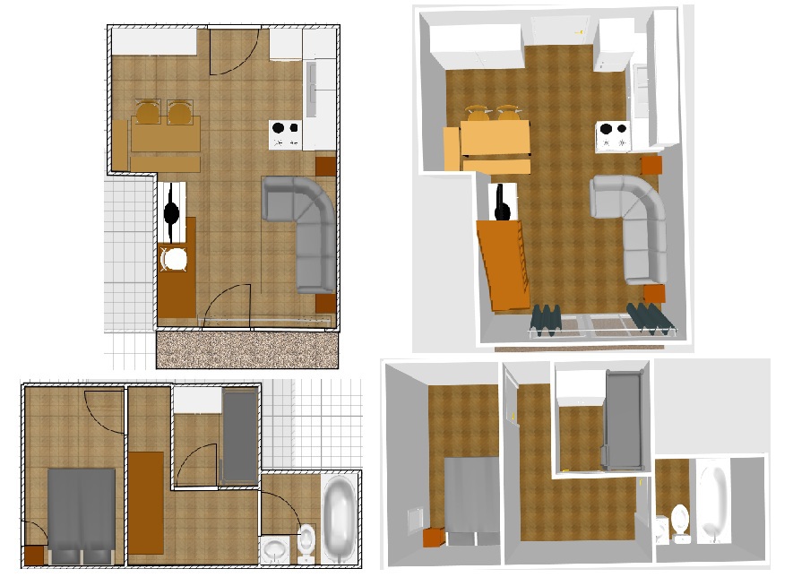 Three room duplex apartment of 40 m2 for 4 people