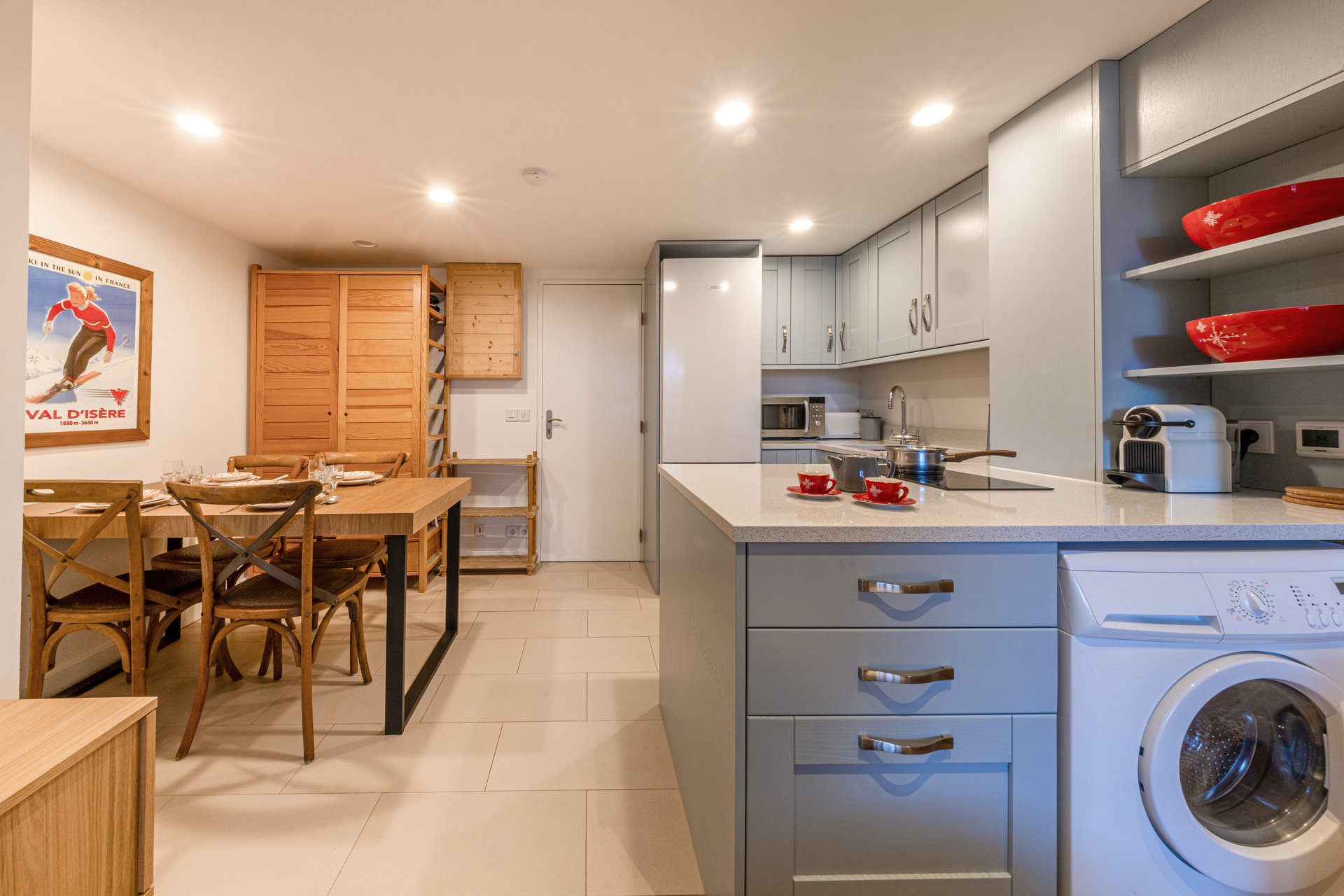 Equipped with dishwasher, oven, microwave, vitroceramic stove, large fridge with freezer, washing machine