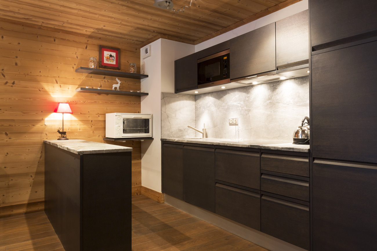 Equipped with dishwasher, oven, ceramic hob, hood, microwave oven, fridge with freezer