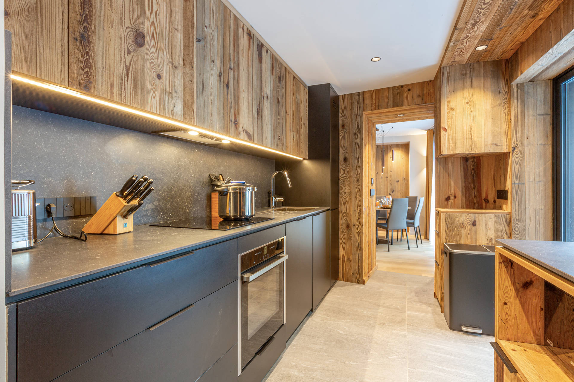 Equipped with dishwasher, microwave oven, oven, hood, and induction stove