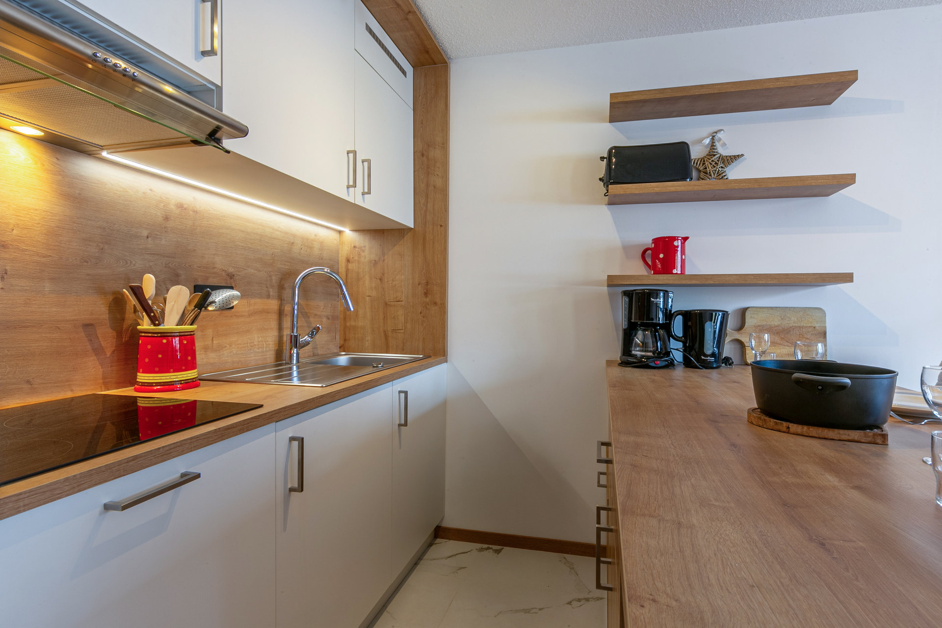 Equipped with dishwasher, microwave oven with grill, hood, fridge, induction hob