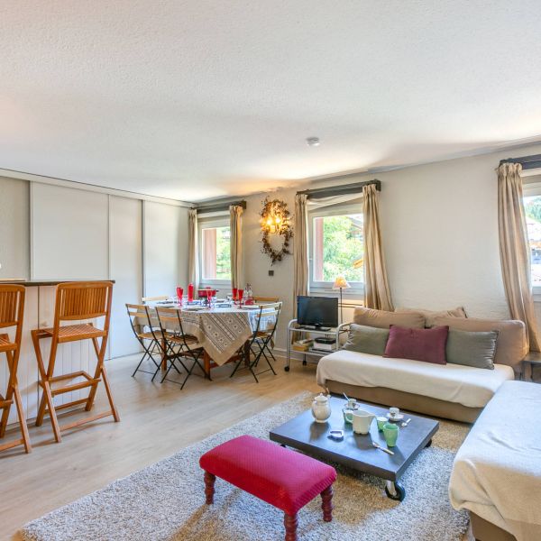 At the edge of the village center and shopping streets (shops, restaurants, ski hire, ski lessons, etc.)