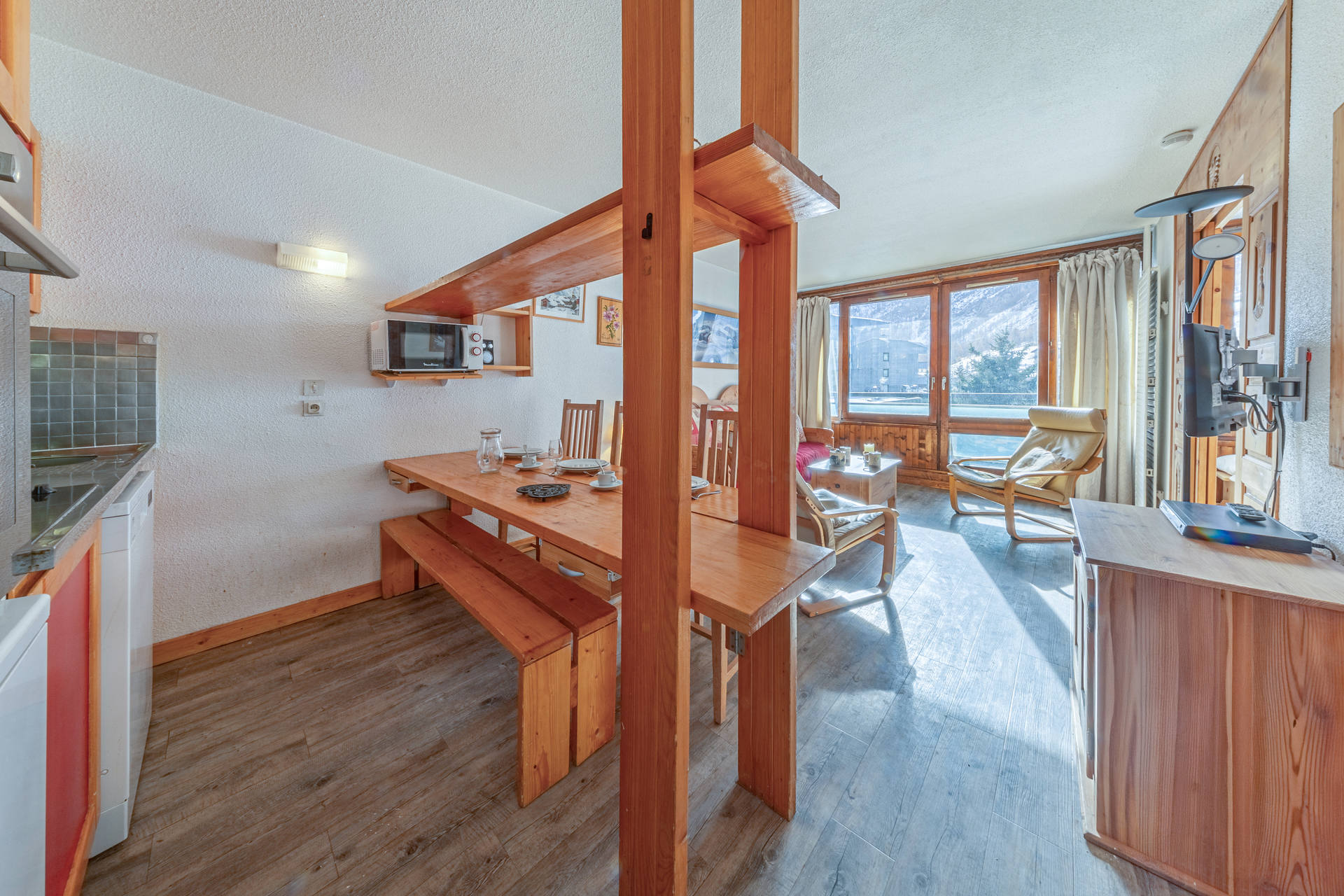 Near the shopping center (shops, restaurants, ski hire, ski lessons ...), access by covered galery.