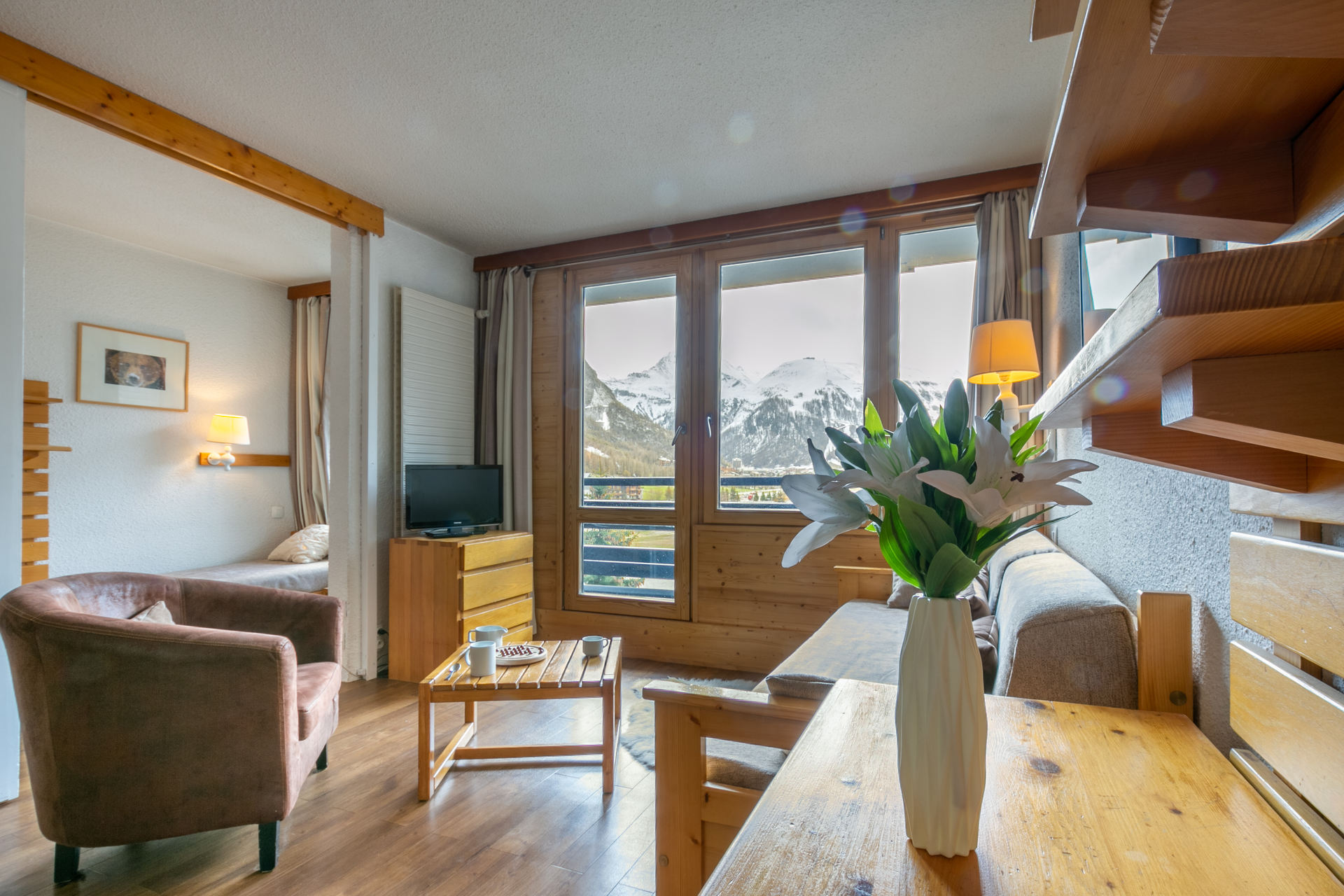 1 room and half apartment of 32m2 for 4 people in La Daille Located on the 4th floor of the residence, entrance E, with a South facing balcony Beautiful landscape on the surrounding mountains