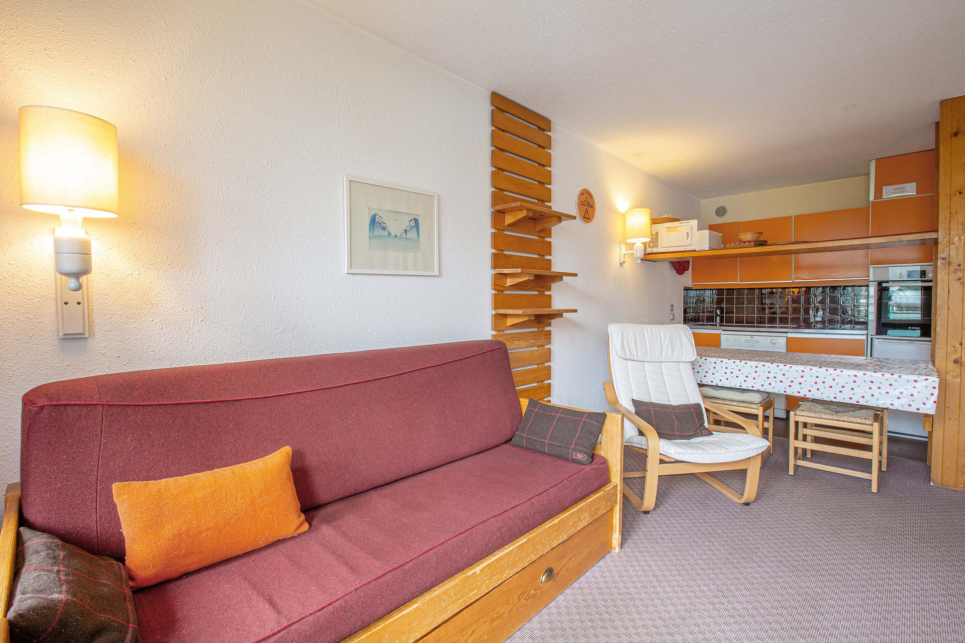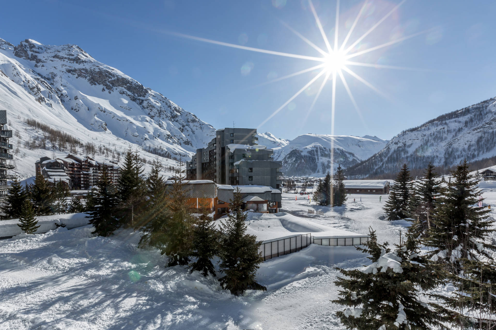 Near the shopping center (shops, restaurants, ski hire, ski lessons ...).
