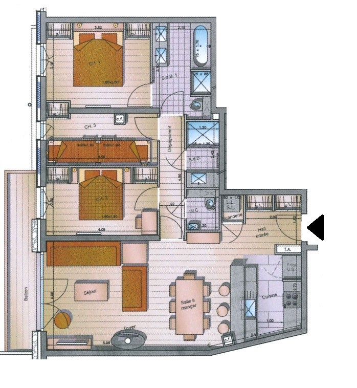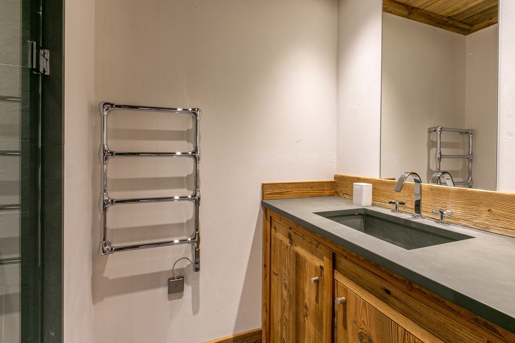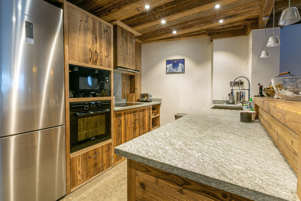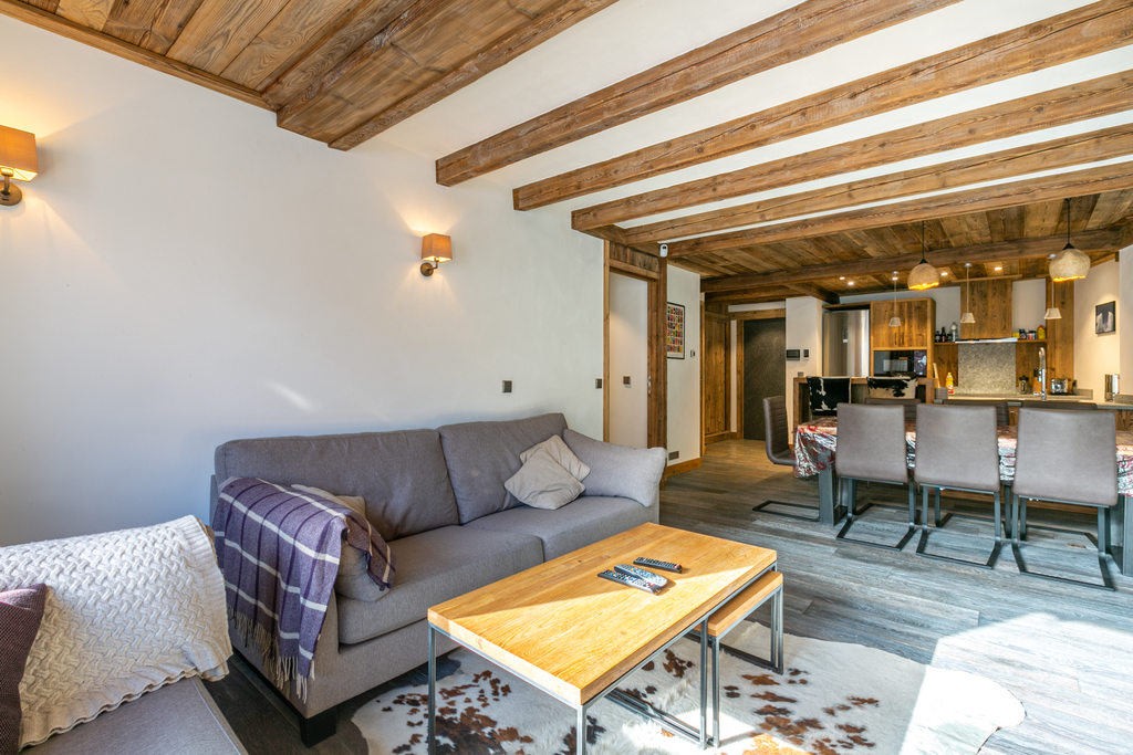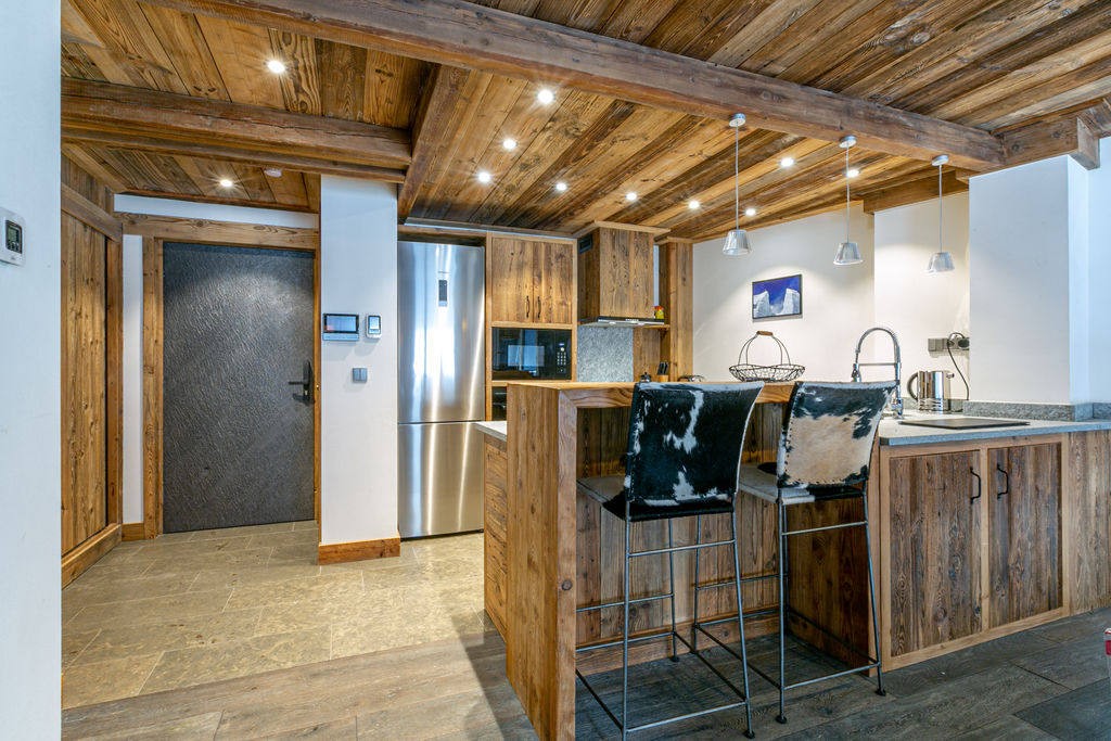 In a new luxurious residence built in 2016 and located route de la Balme, come and discover this 3 bedrooms apartment of about 83 sq.m. Ideally located on the 2nd floor, it enjoys lot of brightness thanks to its south east facing exposure. It is composed of an entrance with storage, open plan fitted kitchen, dining area by the fireplace and a living area with balcony. The night area is composed of an ensuited master bedroom, one double bedroom and a kids bedrooms with 4 bunk beds. Its exquisite interiors with high quality materials, fireplace, and alpine decoration will seduce you immediately. It is sold furnished with a cellar, a ski locker and underground parking space. To visit without delay ! Condominiums of 10 units. Annual expenses : 7183 euros.