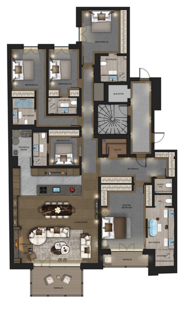 In the heart of Val d'Isère, unforgettable holidays await you in this comfortable flat with top-of-the-range facilities, unheard of in a residential building! This fabulous flat offers 4 en suite bedrooms for your guests and an incredible master bedroom of almost 45 sqm opening onto a south-facing balcony for you. A spacious living room with fireplace and terrace is the perfect place for socializing. Due for delivery in December 2025, the interior can be customized to suit your requirements. It is sold with a ski locker and 2 garages in the basement of the residence. Condominiums of 12 units (No proceedings in progress).