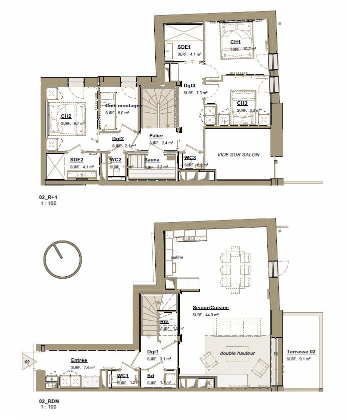 Come and discover this new build 117 sqm duplex apartment integrated into a condominium of only 9 lots. It includes 2 bedrooms and a cabin with bunkbeds, a living room with double height ceilings, a laundry room, a sauna and numerous storage spaces. Its east-facing terrace is ideal for breakfasts in the rising sun! It is sold with 2 parking spaces and a bicycle cellar/storage space. Delivery: December 2026. Reduced notary fees. Condominiums of 9 units (No proceedings in progress).