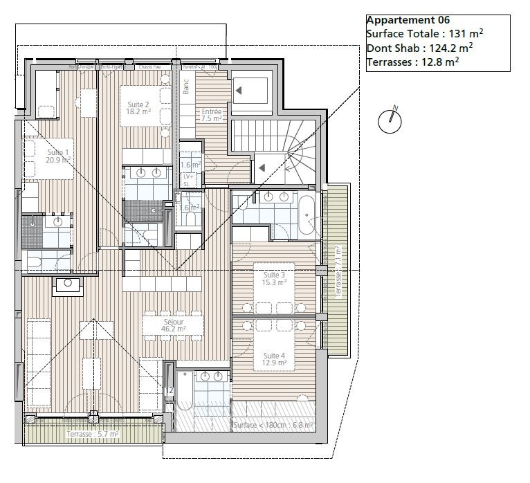 Within an existing residence, on the very top floor to be built, this new apartment of approximately 130 sqm offers all the advantages of a small chalet. It will benefit from access by private elevator which will directly serve its spacious entrance hall with plenty of storage space. 4 bedrooms with bathrooms will welcome your guests in the greatest comfort and for moments of conviviality a spacious living room with fireplace and generous ceiling heights will allows you to enjoy a view from above of the village of Val d'Isère. An enchanting place, bathed in light, to personalize according to your desires! Delivery: Fall 2026 Condominiums of 64 units (No proceedings in progress).