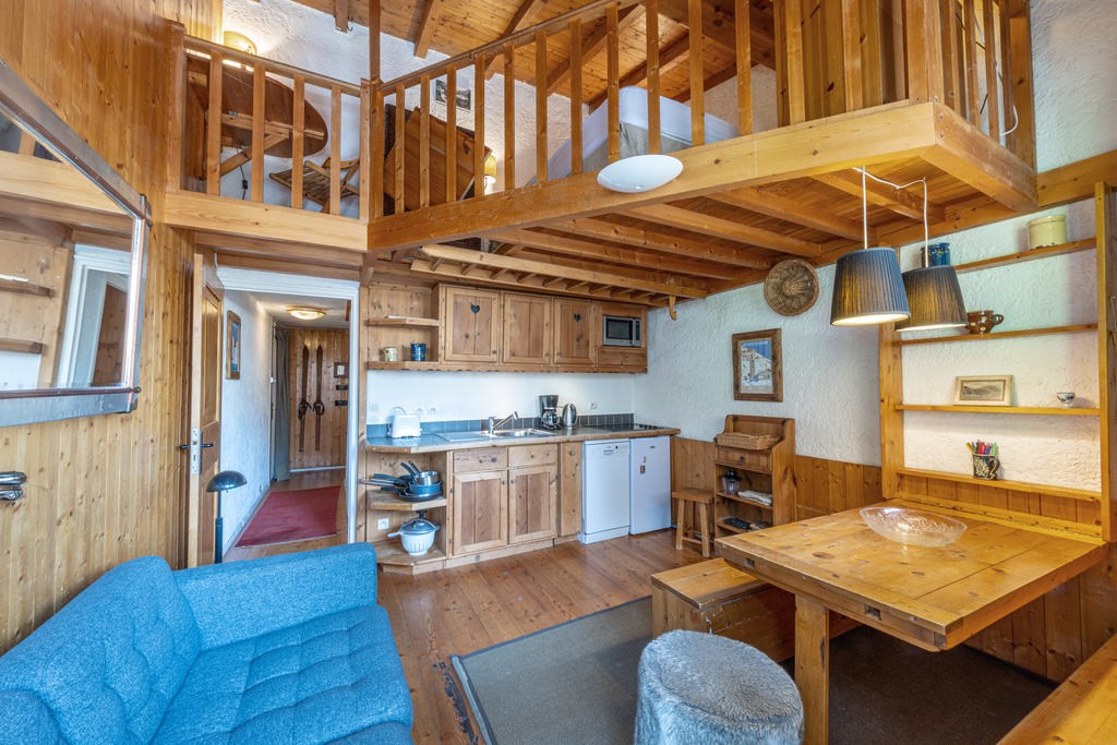Rare on the market! In a co-ownership ideally located on the edge of the slopes and very close to the old village, discover this 3-room duplex flat decorated in a traditional Alpine style. It comprises an entrance hall, a bathroom with WC, a living room with open-plan kitchen and south-east-facing balcony. Upstairs there is a dormitory bedroom for 3 and a mezzanine bedroom with a double bed. This property comes with a ski locker and possibility to buy covered parking nearby (in addition to the price). Condominiums of 26 units (No proceedings in progress). Annual expenses : 2300 euros.