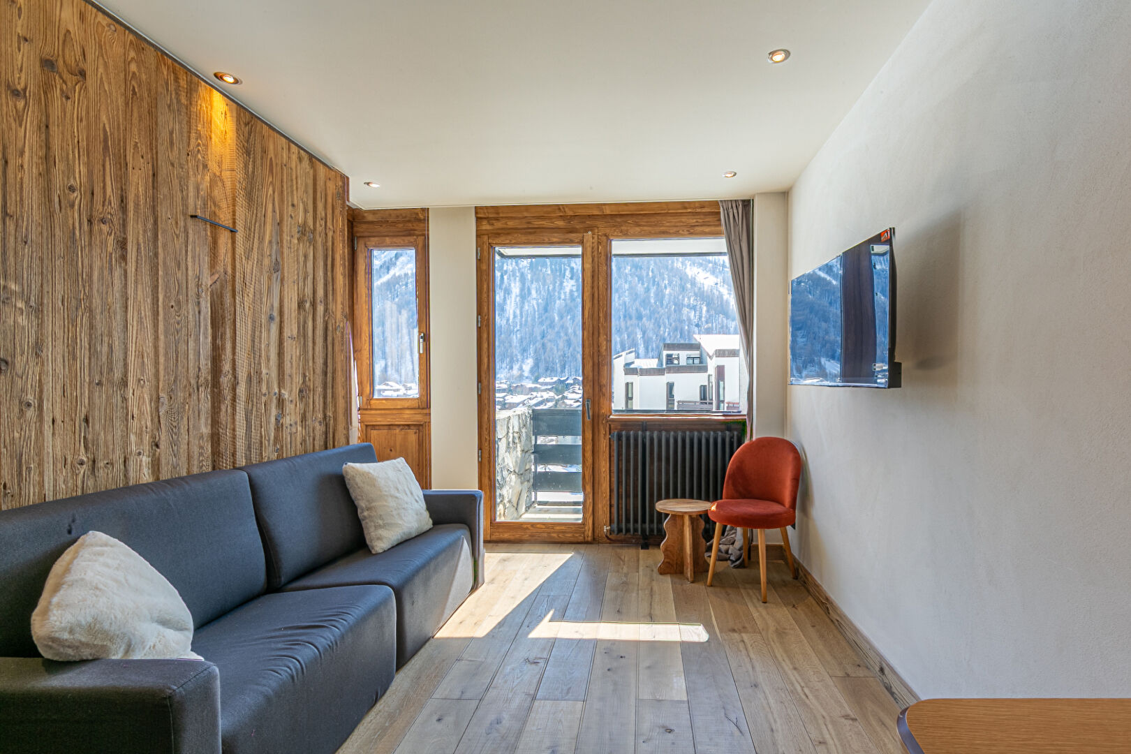 Magnificent views from this superb, fully renovated flat located just a stone's throw from the slopes and shops. It comprises an entrance hall with fold-away bed and storage space, a WC, a bathroom and a living room with open-plan kitchen, pull-out double bed and south-facing balcony with stunning view over the village. You'll love its quiet location and its carefully renovated interior. This property is sold with a ski locker and a cellar. Condominiums of 74 units (No proceedings in progress). Annual expenses : 1800 euros.